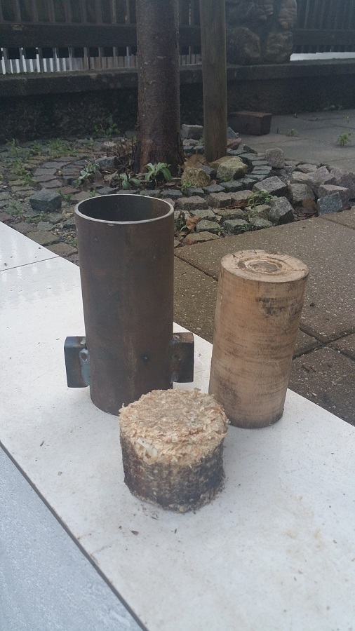 In einem YouTube Video hat einer einen 30 Tonnen Wagenheber und macht mit einem 10 cm Durchmesser HT-Rohr Briketts.