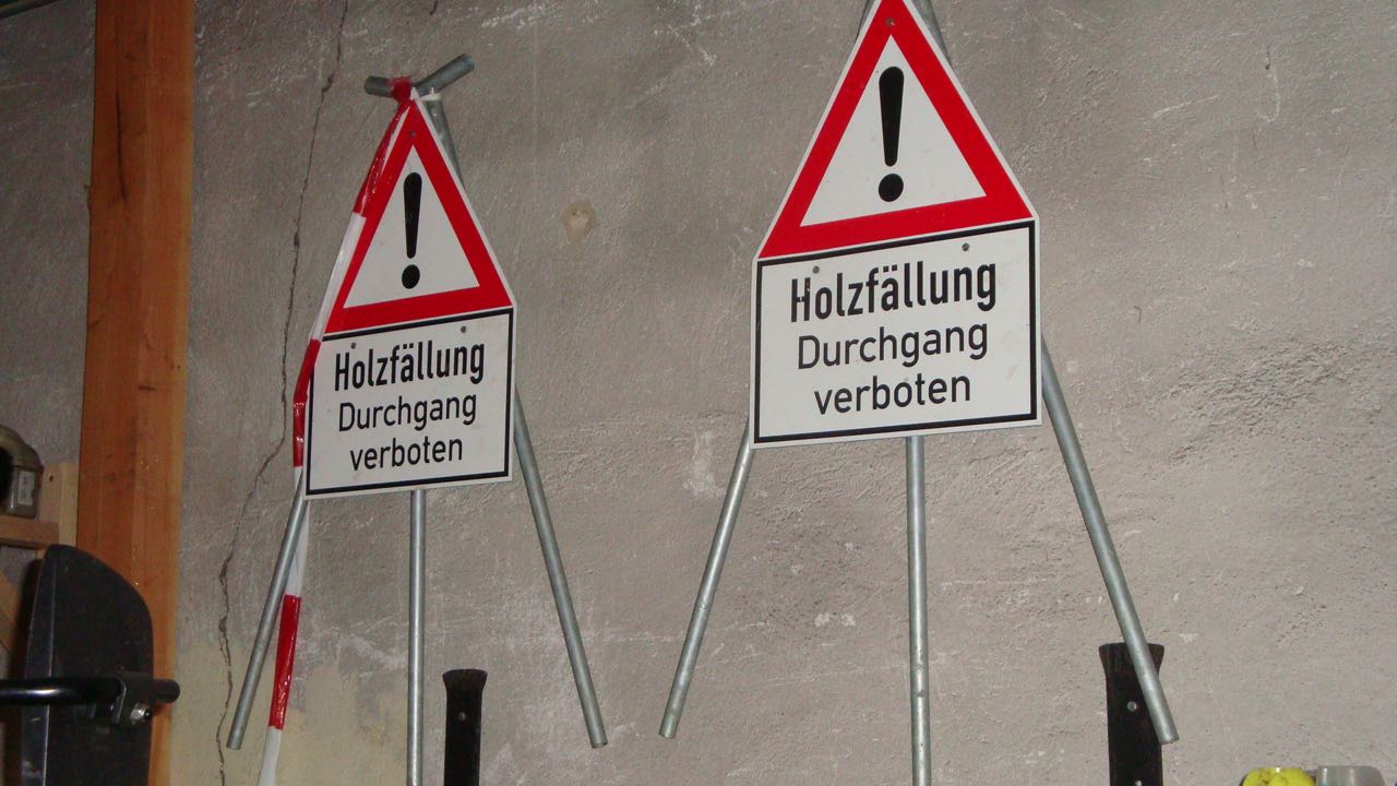 wie sperrt ihr bei Arbeiten im Wald die Wege ab, damit keine Fußgänger/Radfahrer/Reiter ... unter den Bäumen liegen beim/nach dem Fällen?