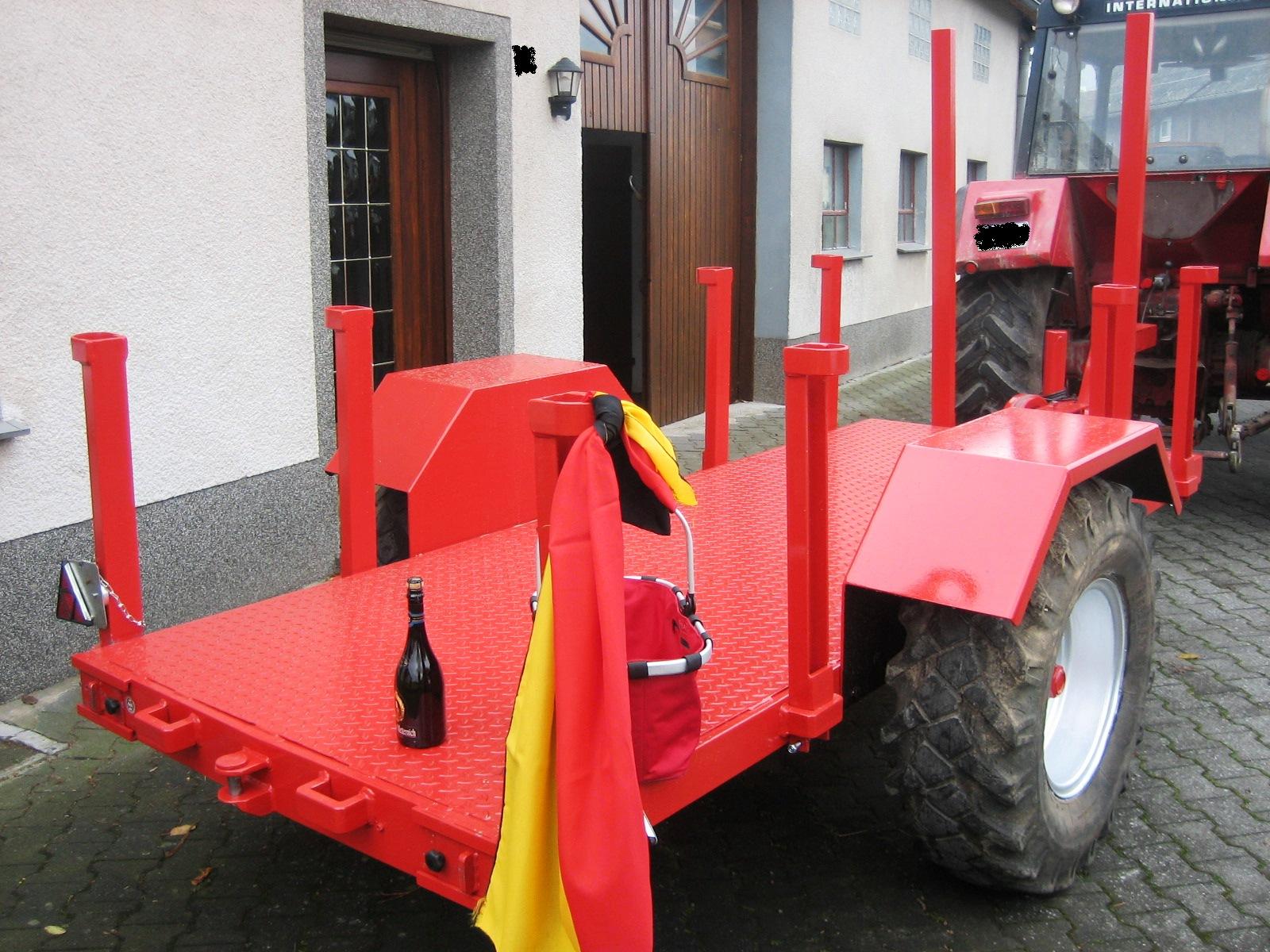 Breite ist dann begrenzt durch feste Radkästen und abklappbaren Bordwänden (vor und hinter der Achse). Boden soll rein um auch andere Güter fahren zu können. Vornehmlich aber 1m-Holz quer zur Fahrtrichtung.