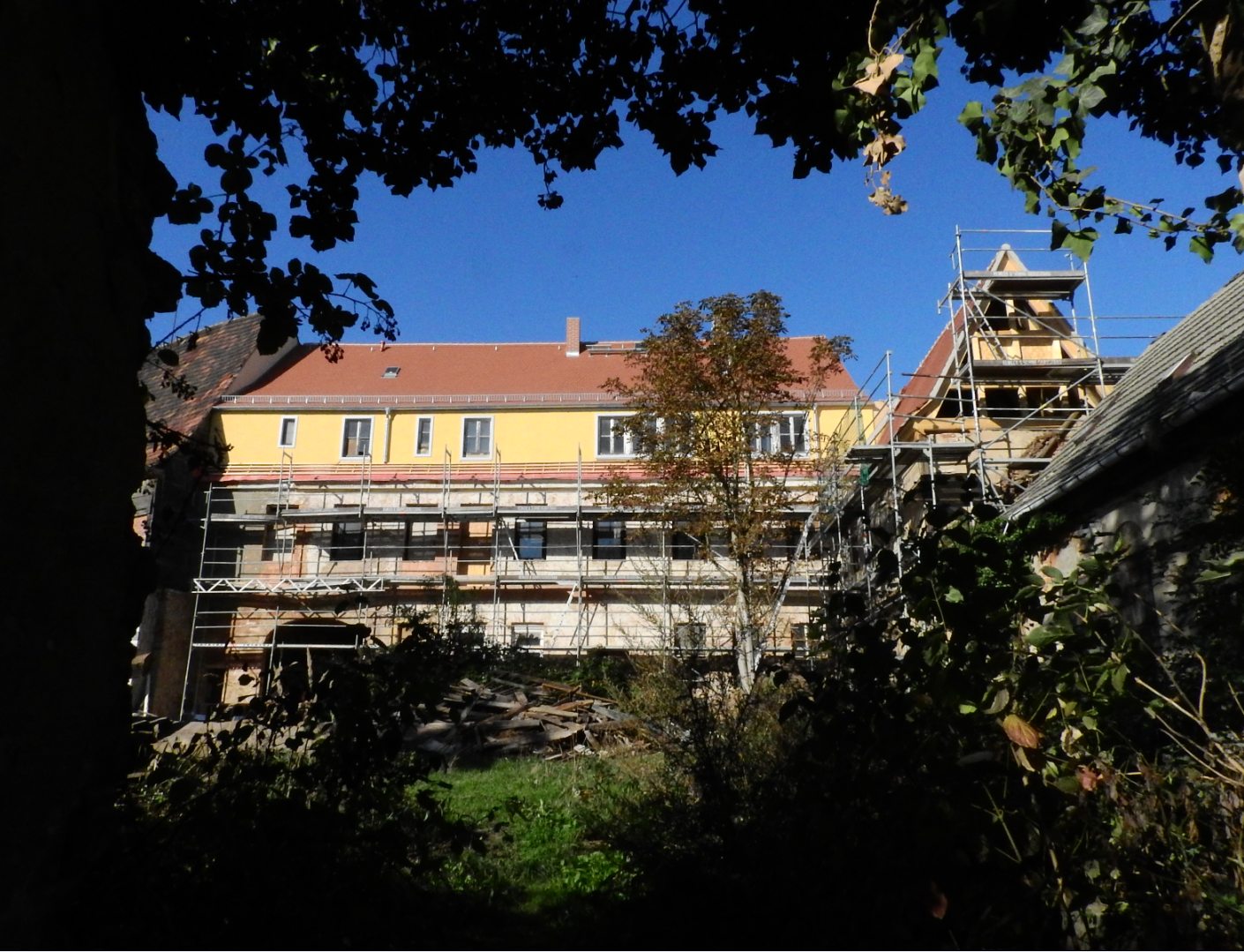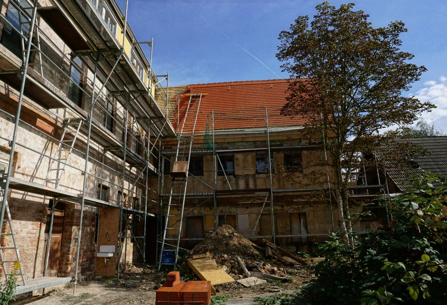 Als nächstes ist der Seitflügel fällig. Der ist ziemlich marode, da muss viel gemacht werden. Das wird ein relativ großer Aufwand für ein ziemlich kleines Gebäude. Aber ich glaube, dass man ihn erhalten muss, er ist wichtig für das ganze Ambiente. Wir werden den Dachstuhl und den Giebel komplett neu aufbauen.