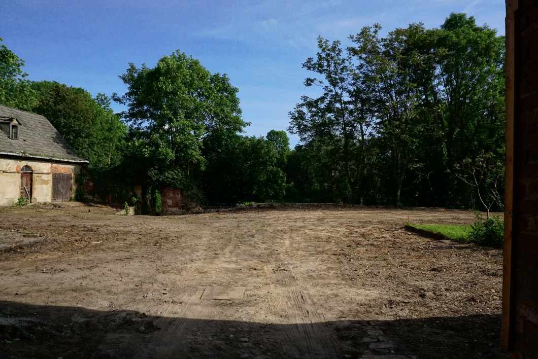In den nächsten Tagen gehen auch die Arbeiten am alten Gärtnerhaus und Gewächhaus los. Dort droht der alte Giebel abzustürzen.