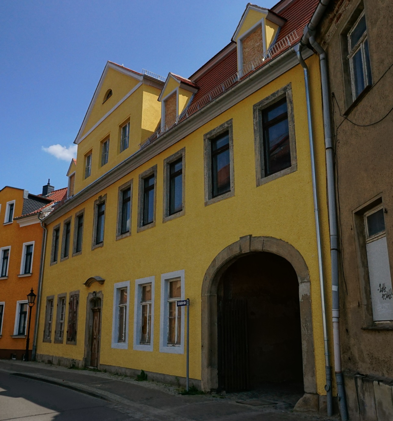Den Seitenflügel setzen wir farblich ab und streichen ihn in einem Sandton.