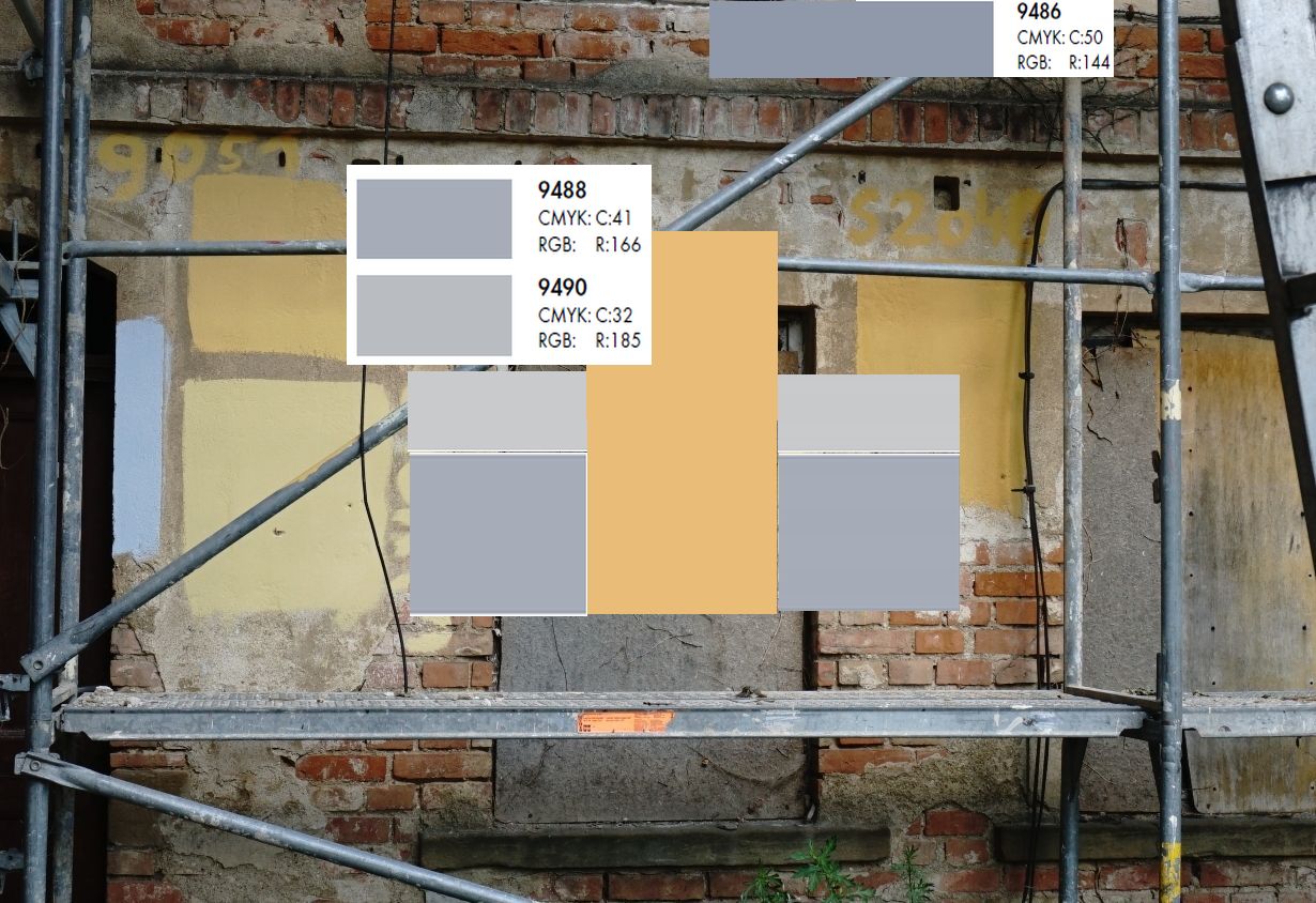 Jetzt geht es um die Grautöne für die Gewände um Türen und Fenstern. Ganz gut sehen die Grautöne 9488 und 9490 aus, wobei ich zur 9490 tendiere.
