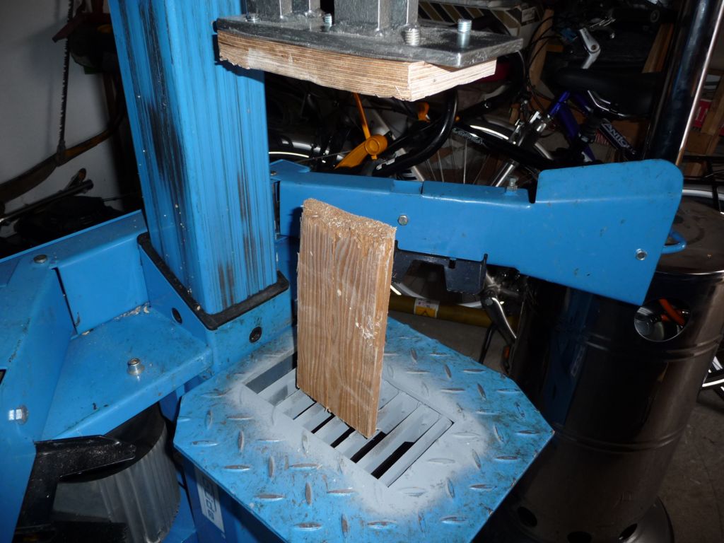 mit so einem aufsatz könnte ich meinen splitmaster 9 noch produktiv nutzen. auf die idee hat mich ein großhändler gebracht, der einen produzenten für ca. 160 tonnen jährlich sucht. der markt scheint also vorhanden zu sein. eine profimaschine wie der spaltfix rentiert sich allerdings nicht. für diese maschine muß man vorher rollen bzw. kantholz mit genau 16 cm abschneiden, und diese arbeit ist nicht zu unterschätzen.