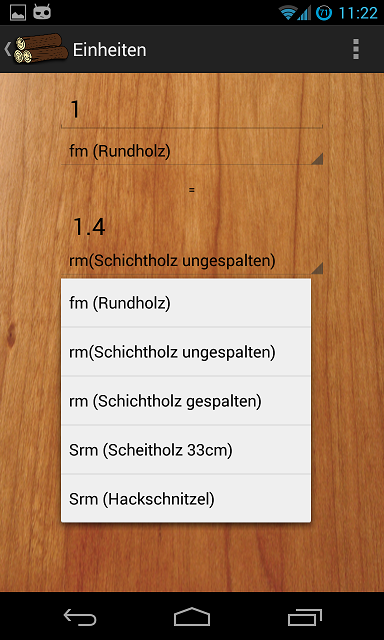 Ich möchte hier aber noch einige Erweiterungen einbauen, so dass man eine App hat, mit der man alles was mit Holz zu tun hat, machen kann. z.B. auch noch GPS-Daten erfassen, Holzvolumen mit Heizwerte errechnen, Listen speichern und wieder laden. usw.