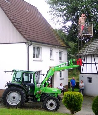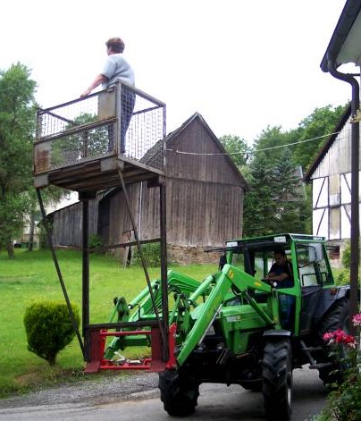 Auf den Fotos ist jedoch mein alter Schlepper zu sehen, dessen Frontlader noch keine Paralell -Führung hatte. Da war das ganze noch ein bisschen schwieriger und gefährlicher zu handhaben.