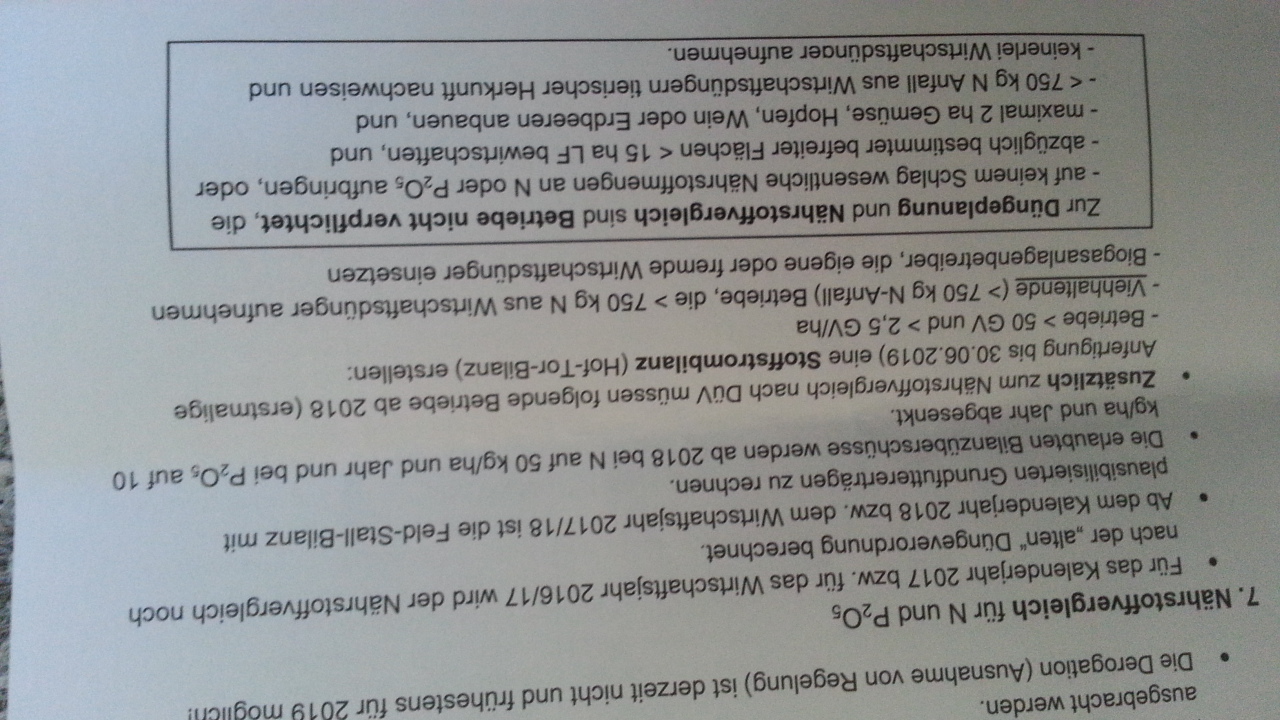 Gestern sagte mir ein Bauer,der in einer Schulung für Düngerprogramme war die Betriebe unter 15 han würden überhaupt keine Org. Dünger mehr nehmen nur damit sie den ganzen Dokumentations Wahsinn nicht zu machen brauchen, da bin ich auch dabei das mal zu überdenken
