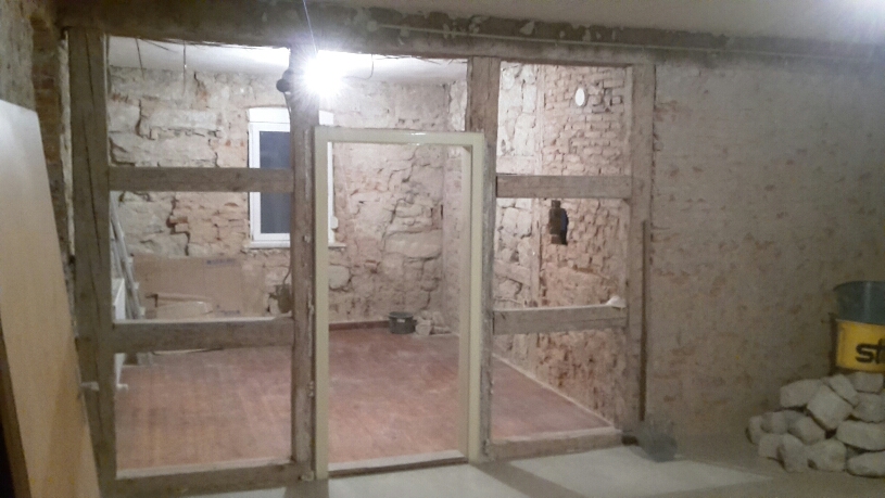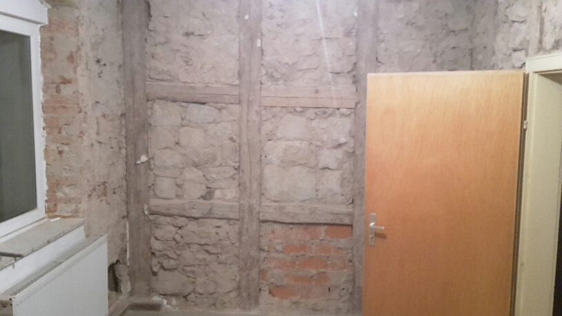 Mit den gemauerten Gefachen wird es etwas schwieriger, die sind teilweise locker, mal sehen wie ich das mach... wahrscheinlich ausbauen und wieder neu rein mauern...