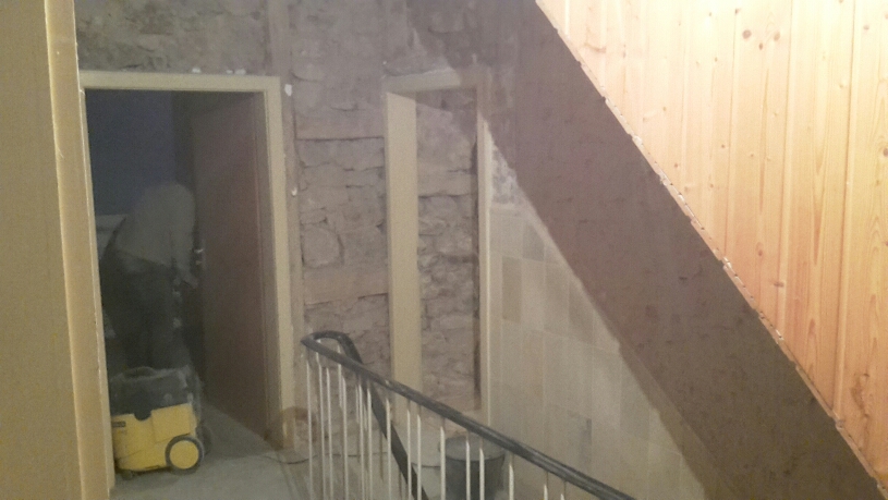 So, Urlaub ist vorbei. Im ersten Stockwerk sind jetzt alle Wände und Decken wo nichts mehr waren draußen.
