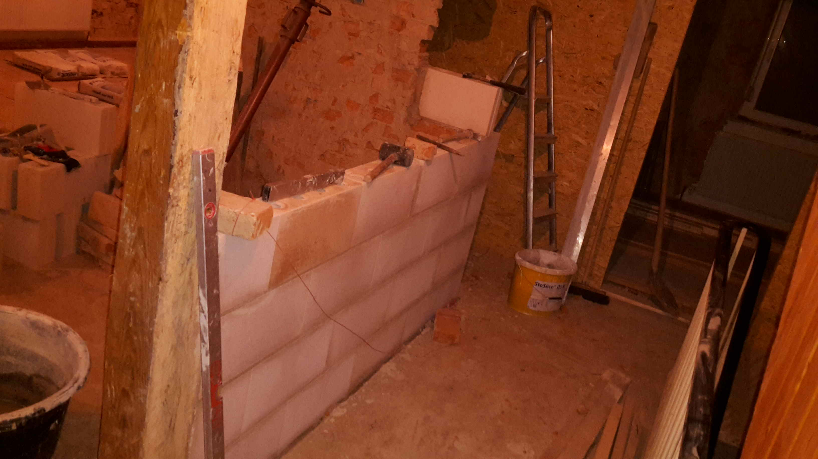 .... so, nach den beiden Ständerwänden muss auch mal wieder was mit Steinen her . Beim Übergang zur alten Mauer artete das Ganze dann irgendwie in ne Runde Tetris aus