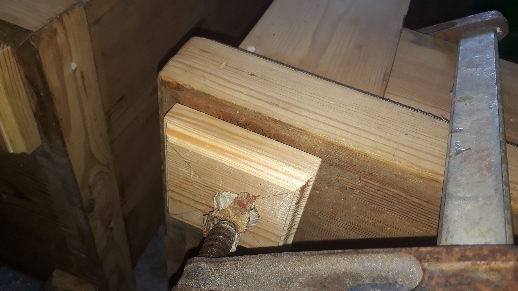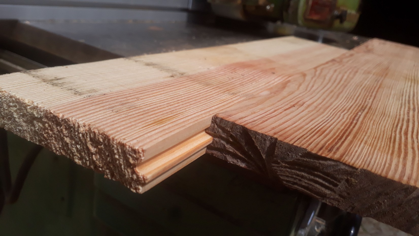 Die Sockelleisten fehlten auch noch im 1OG, da fast 50m benötigt werden, wäre kaufen gan schön ins Geld gegangen, also schnell ein paar alte Dachlatten gesucht, Hobel und Fräse ist ja vorhanden.
