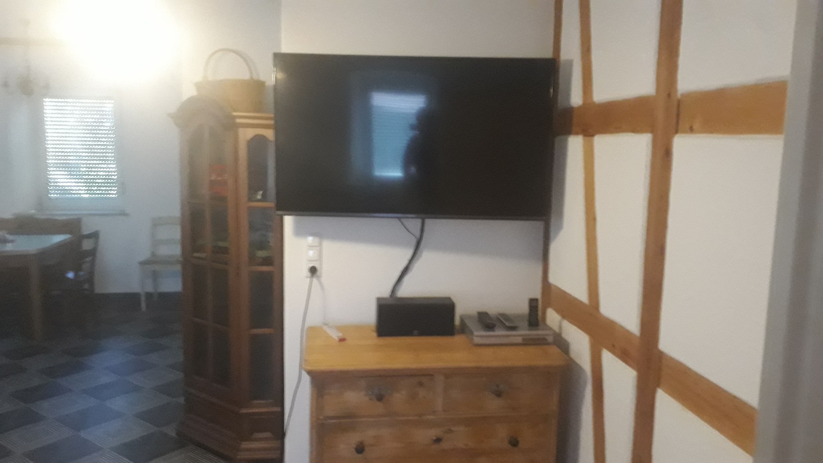Bei mir ging es auch wieder mit Kleinigkeiten weiter. Da man den alten Fernseher vom Sofa aus fast nicht sehen konnte, musste was größeres her. Da für die gewünschte Höhe eine Halterung nötig war, wurde die gleeich mitgekauft.