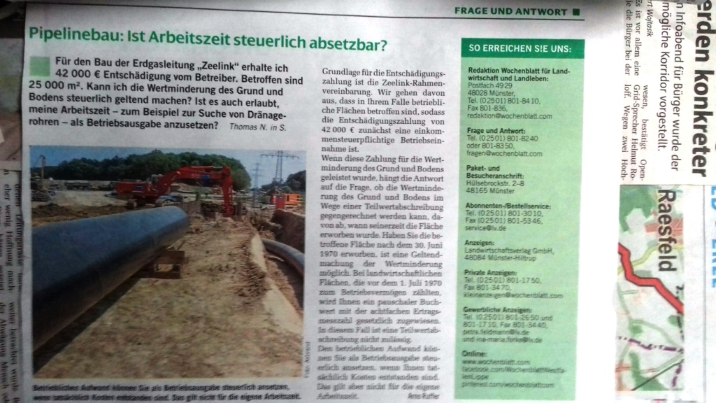 Für die Entschädigung ist die Breite von 10m vorgesehen und dieser Streifen wird im Grundbuch gesichert. Bedeutet: 10x4€ = 40 € pro Meter Trasse.