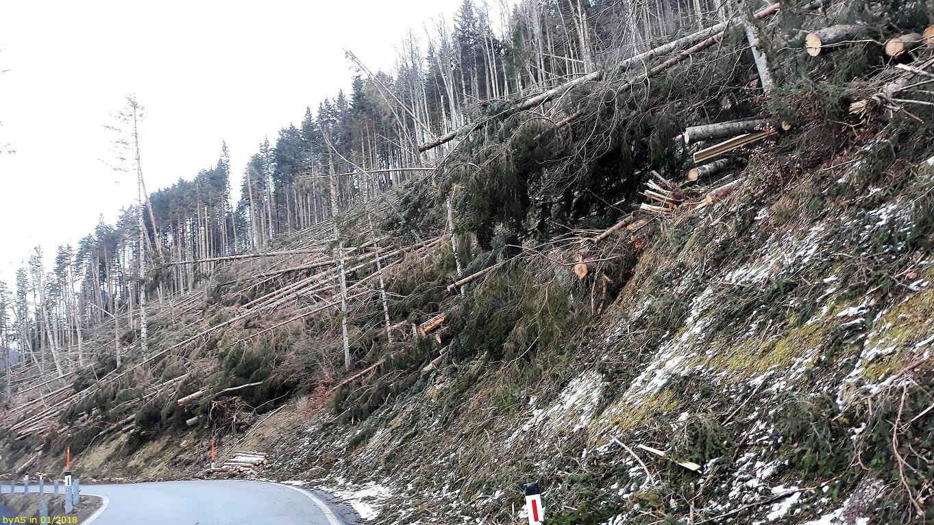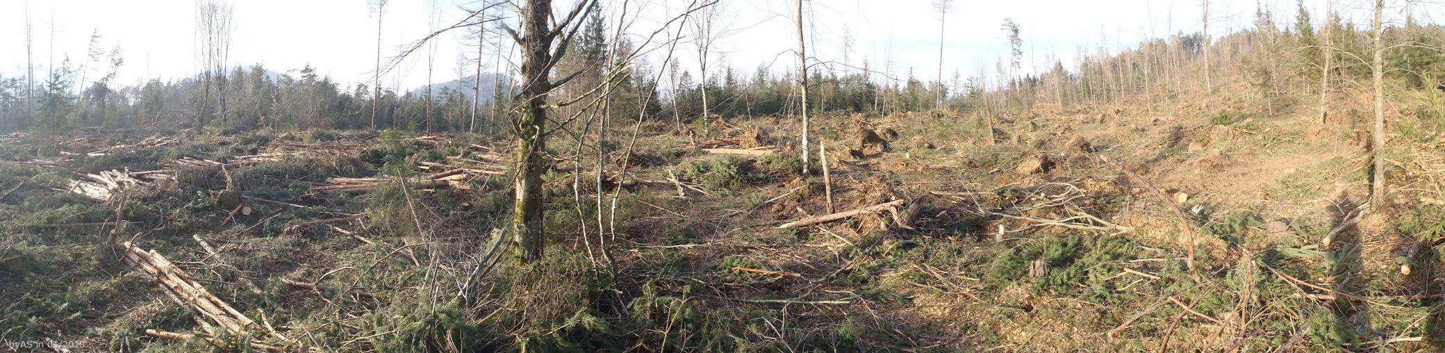 Ich hab' heute eine "Sonntagnachmittagsspazierfahrt" in das Schadensgebiet von Sturm "Yves" hier in Kärnten unternommen. Puuhhh ... Wenn man das so direkt und nicht via Bildschirm sieht, wird einem schon anders im Gemüt. Und das war keine 30 km von meinen Waldstücken entfernt. Die liegende Holzmenge wird mittlerweile auf 460.000 Fm geschätzt.