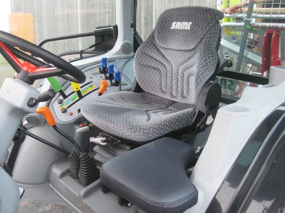 Es ist mir unbegreiflich, warum Same-Deutz-Fahr in die schöne Agroplus-Baureihe keinen Beifahresitz einbaut. Das ist bei vielen Betriebsinhabern ein K.o.-Kriterium beim Kauf. Der John Deere 5080R hat nämlich einen. Schließlich will man doch zusammen mit dem Hofnachfolger Schlepper fahren.