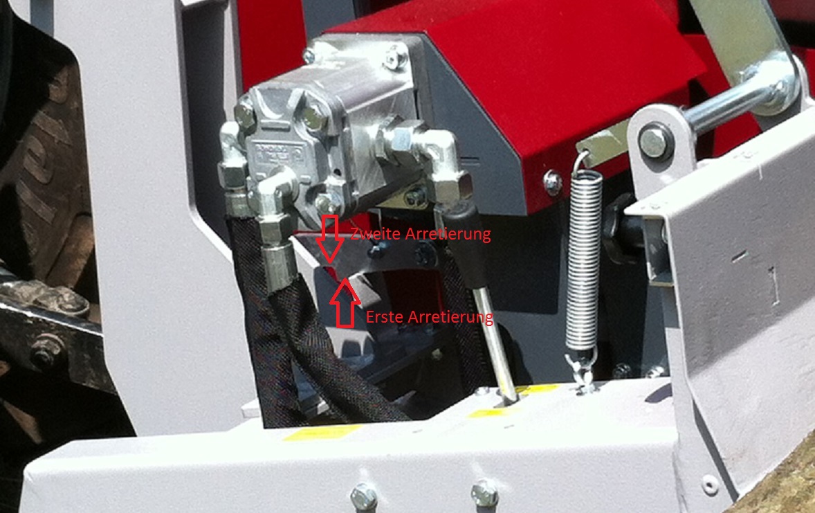 Spalter gestellt. Säge mittel langer Schläuche an der Schlepperhydraulik angeschlossen und den Spalter an der Zapfwelle. Das ist mit auch