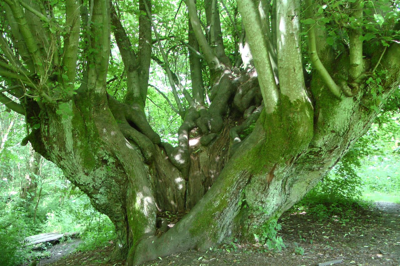 Auch sonst hatte es in dem Park sehr alte Bäume. Diese Buchen (Zwiesel auf ca. 1,5m Höhe) haben (geschätzt) ca. 1m Durchmesser (auf 2m Höhe)