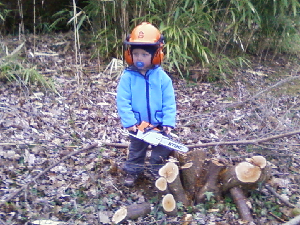 Meiner war kaum auf der Welt bekam er schon vom stolzen Vater ne Säge, seitdem fällt er jeden Tag mehrere Stühle, Schränke, Bäume, .... (kann man im übrigen auch gut Toastbrot mit schneiden