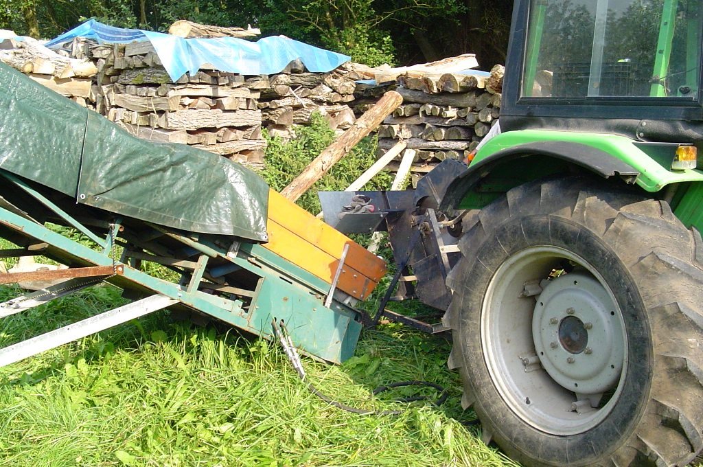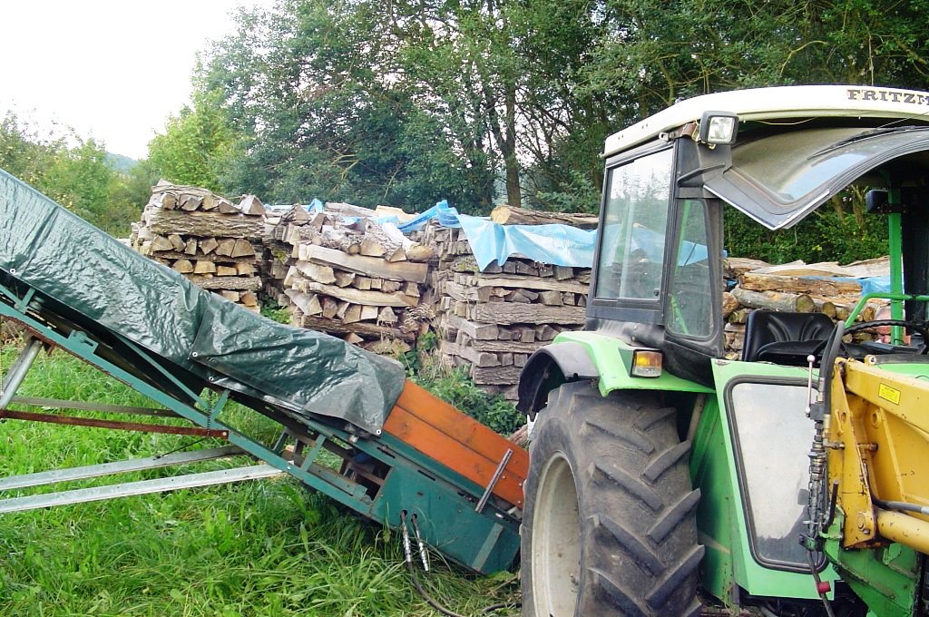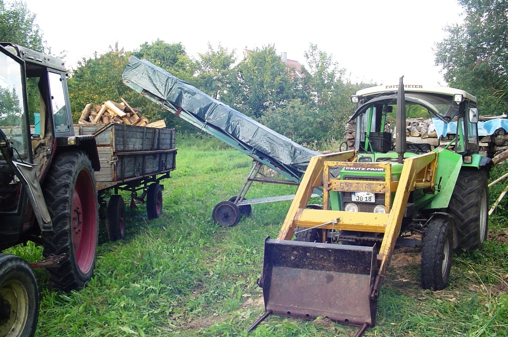 Desweiteren sieht man auf den Bildern eine Wippkreissäge, die ich ebenfalls auf Zapfwelle umgebaut habe mit einem Winkelgetriebe von einem alten Rübenroder mit einer übersetzung von 1:3, drumm kann ich den Deutz 5207 mit der 1000ér Welle mit etwas über Standgas laufen lassen und das Förderband habe ich mit Riemenscheiben auch so übersetzt das es nur Standgas braucht.