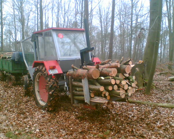 Habe den Wagen geschenkt bekommen, ein größerer wäre zwar schöner, aber zu teuer für meine Zwecke.Habe ja noch nen 6 to Kipper, da passt schon einiges mehr drauf, jedoch lassen sich da die Stämme nicht so schön abladen, wegen den Bordwänden.
