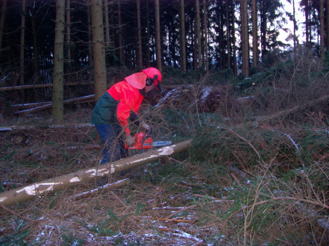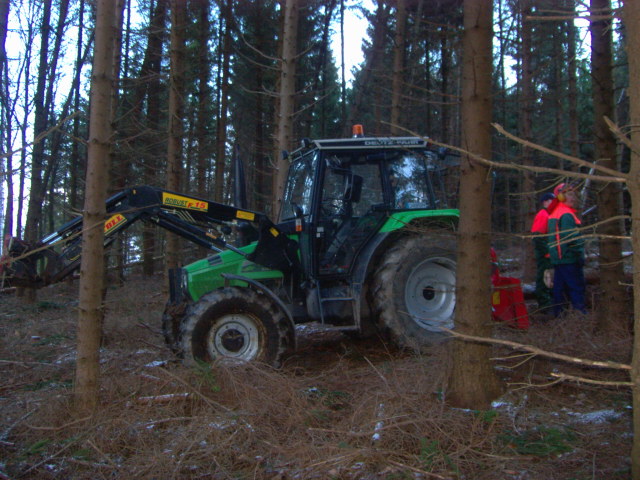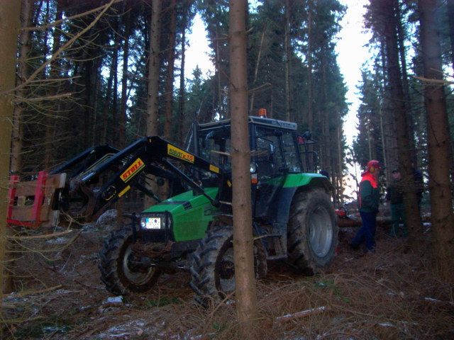 hier mal ein paar bilder von der sturmholzaufarbeitung in einem von kyrill geschädigtem bestand. ich komme aus dem sauerland wo der orkan am stärksten gewütet hat. zusehen ist unter anderem ein deutz 4.17 mit 6 tonnen oehler winde von nem kumpel.