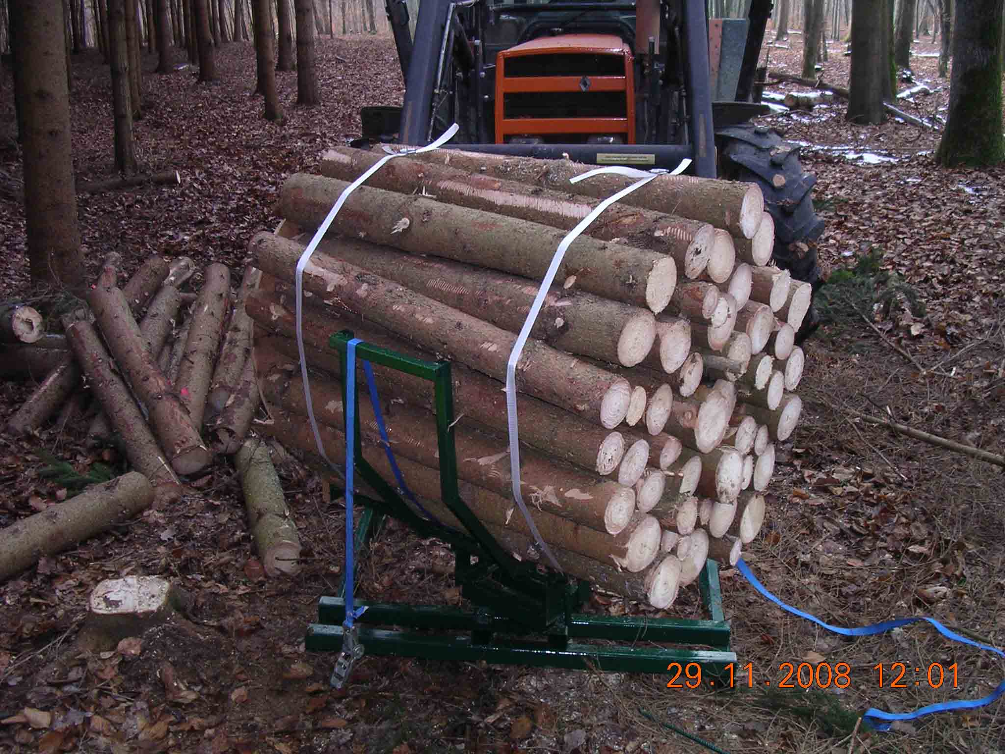 Schaut schon "seltsam" aus deine Methode zu verladen aber gut. Ich sag immer man muss sich nur zu helfen wissen und das ist eine Lösung. Mich wundert es nur das bei den ersten Stämmen der Wagen nicht kippt.