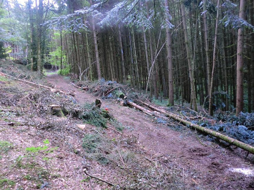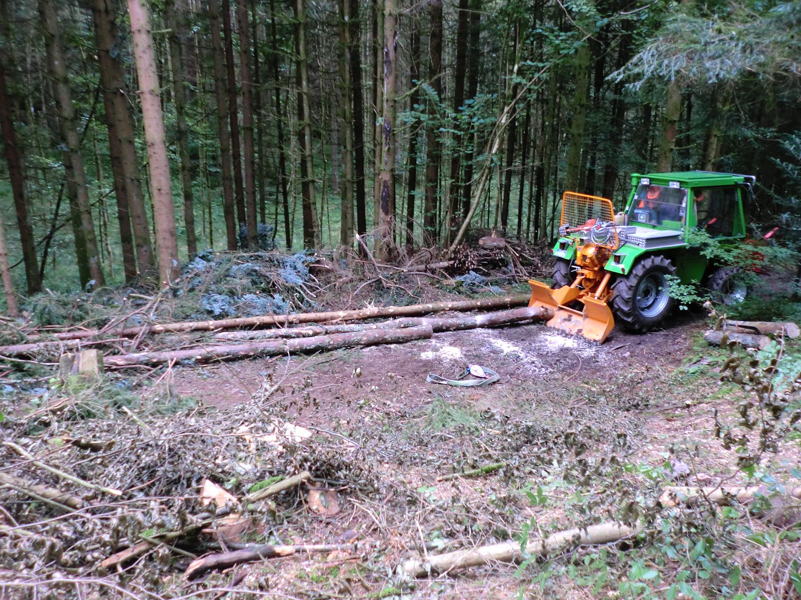 Hier mal Bilder von heute mit einer großen Tanne. Die Tanne hatte eine Nutzholzlänge von 31m. Mußten daraus vier Stücke machen, sonst wäre das Fahren unmöglich gewesen.