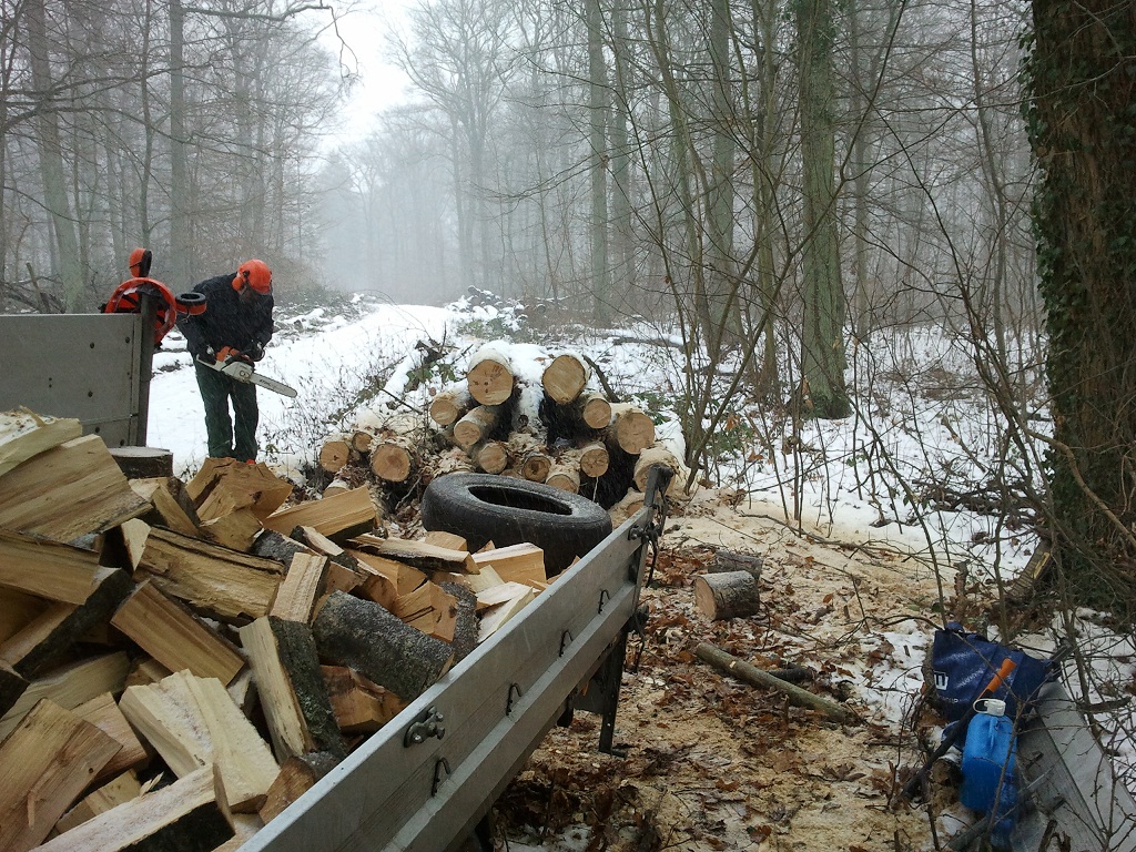 letzten Donnerstag wurden endlich die Äste und Wipfel von der Schlägerung im Herbst gehackt. Das Zeug ging gleich nass als Waldhackgut in eine Großanlage.