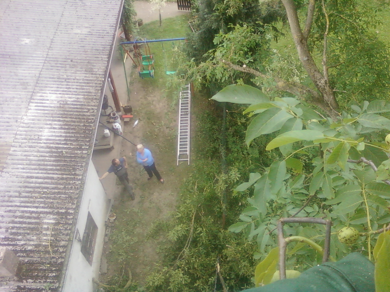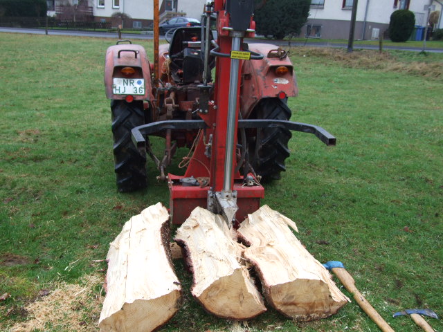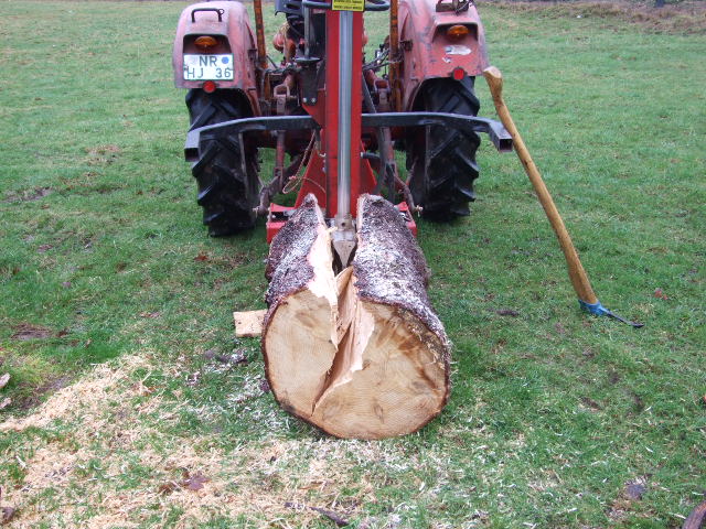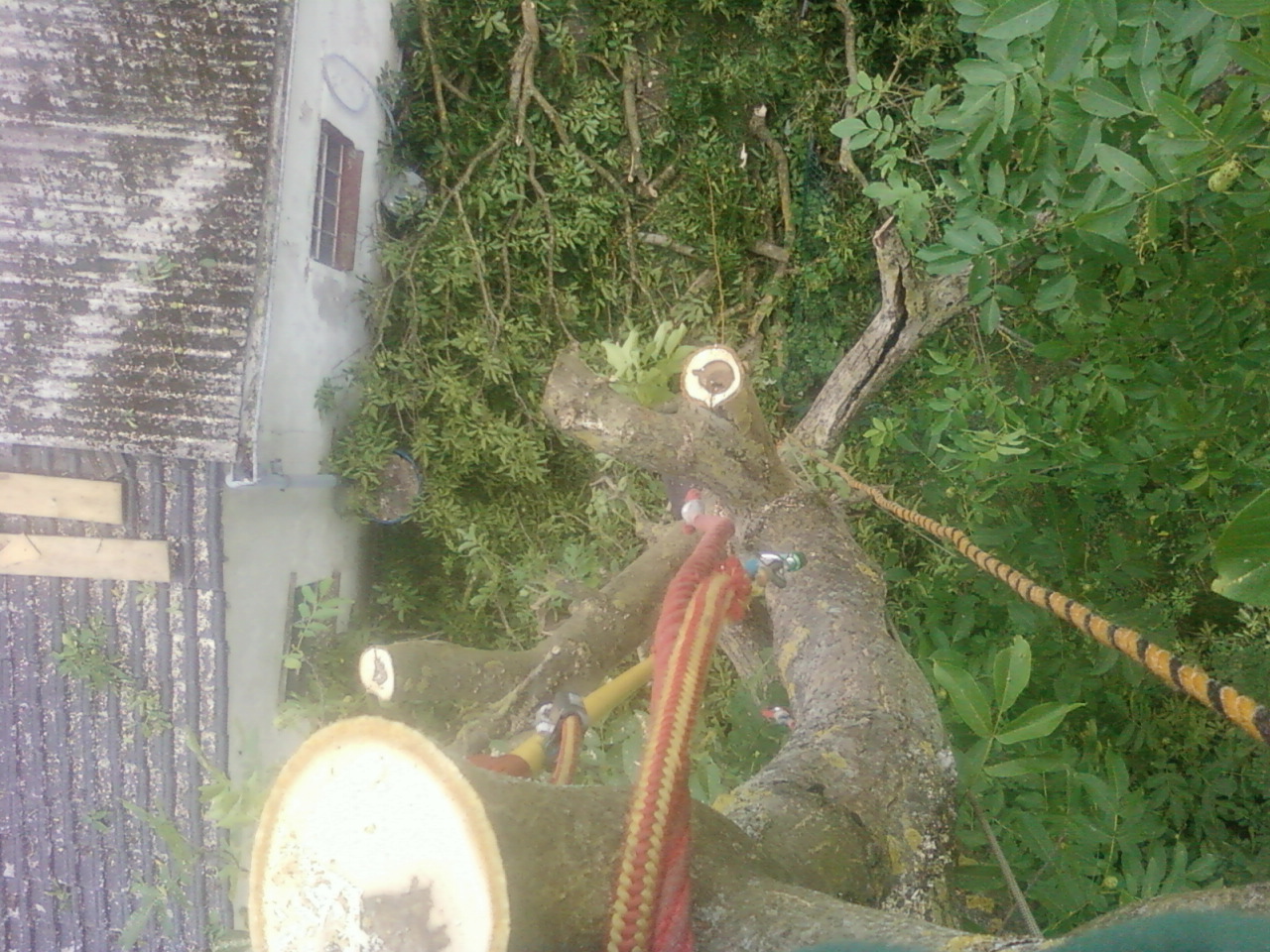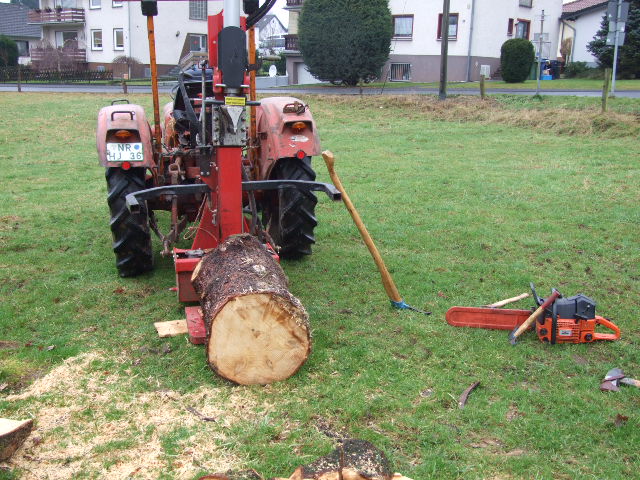 Hier Bilder einer Eichenfällung die ich danach im Wald aufgesägt habe, dann die dicken Eichenäste als Rollen benutzt habe um sie auf den Anhänger zu laden um sie dann zuhause weiter zu bearbeiten: