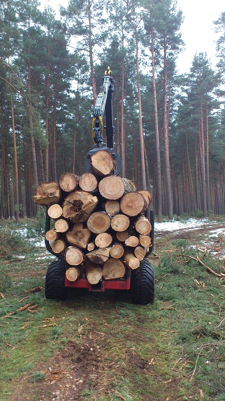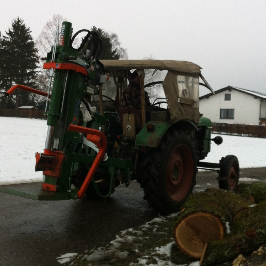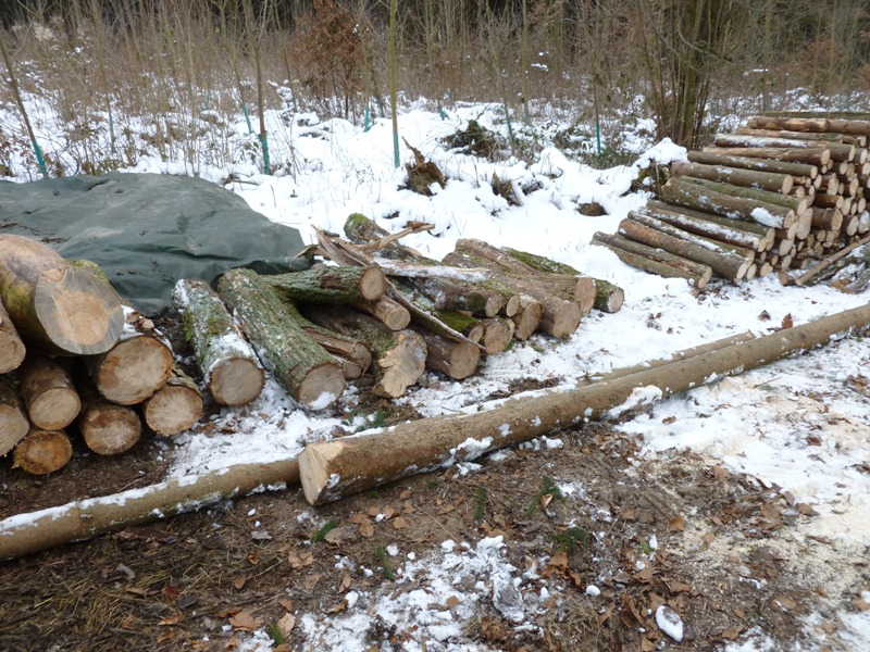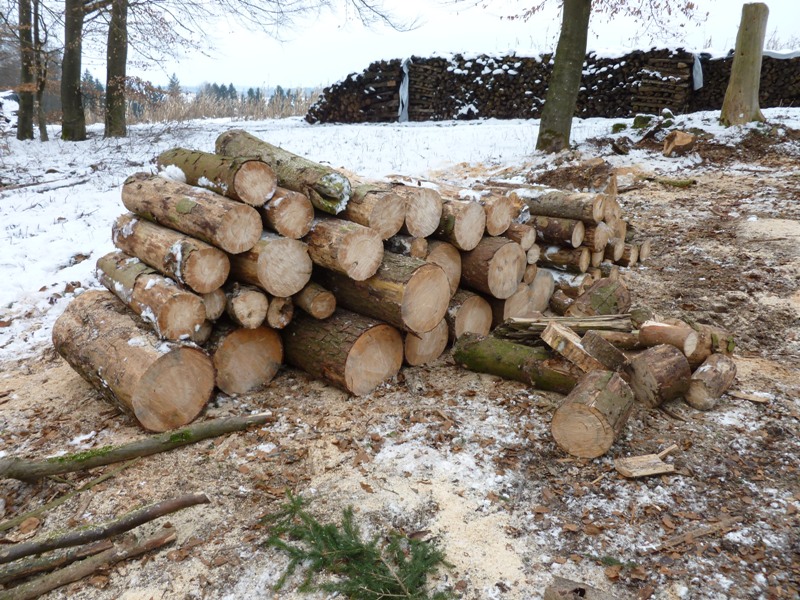 Nun konnten wir dank dem lang ersehnten Bodenfrost in der Faschingswoche enlich mal nen guten Tag mit unserem neuen Spielzeug (altes) Käferholz rücken und auf Rollen sägen.