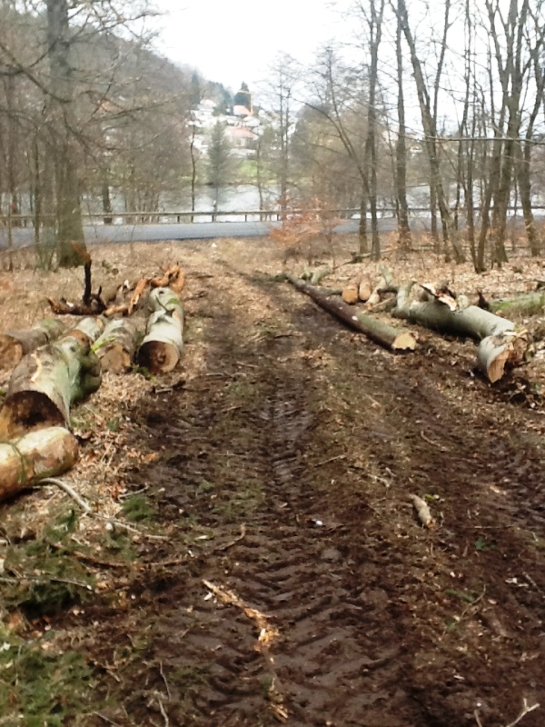 Übrigens hatte auch auch auf vielen Stämmen ähnliche Pfotenspuren wie die hier vor ein paar Tagen gezeigten. Der Kollege ist mehrere Stämme entlang gelaufen.