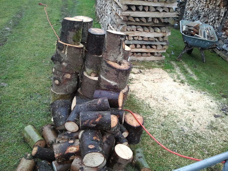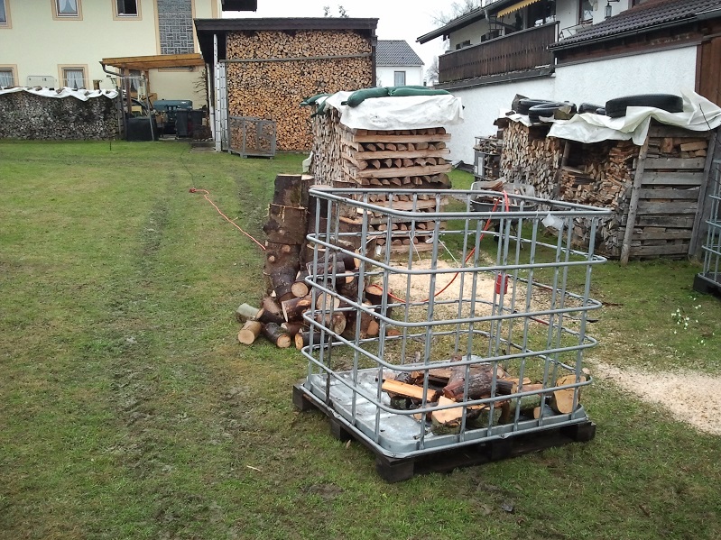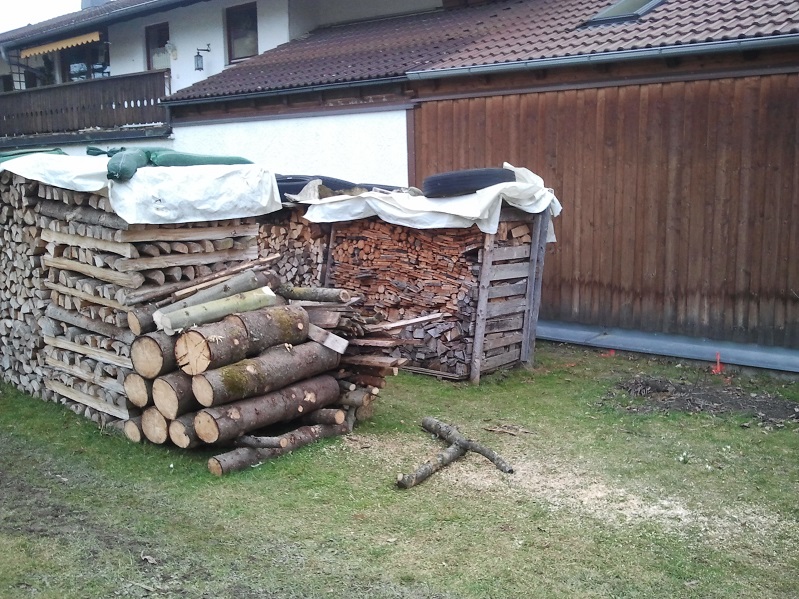 Das Holz hab ich mit der Wippsäge gesägt, die Größeren Roller liegen noch da, wollt ich eigentlich heute Spalten aber das Wetter will nicht ...