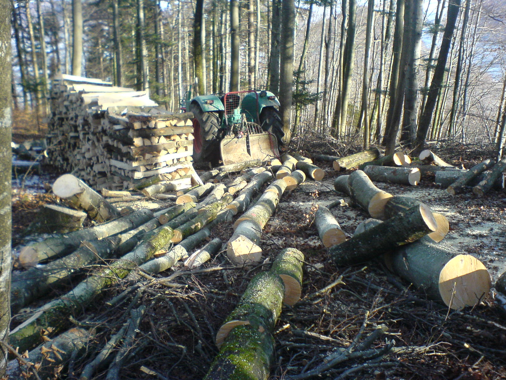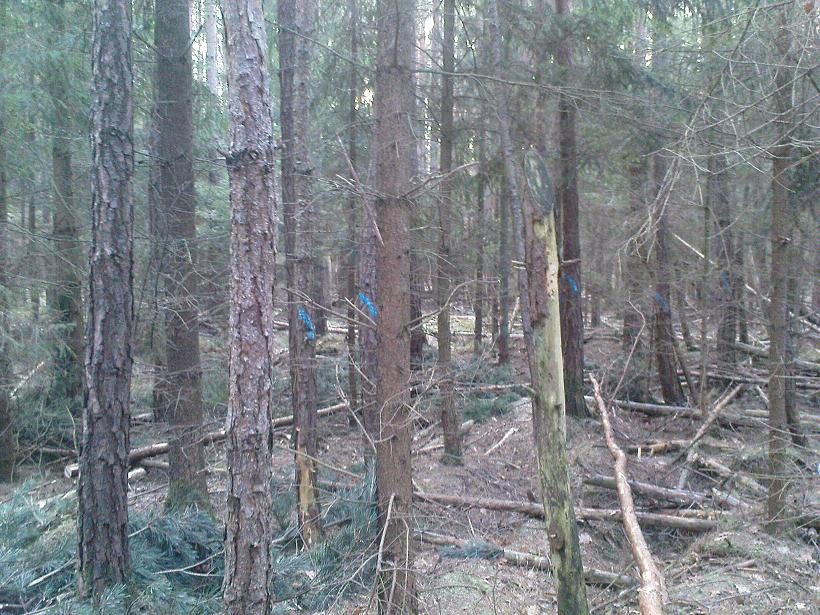 schönes pic..fährst du immer mit dem Schlepper direkt in den Bestand? Was bedeutet denn die Markierung rechts an der Fichte?