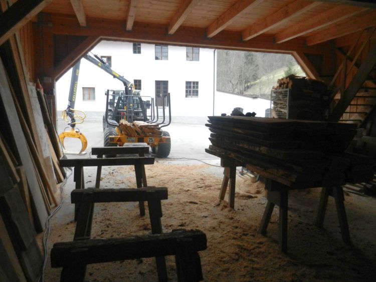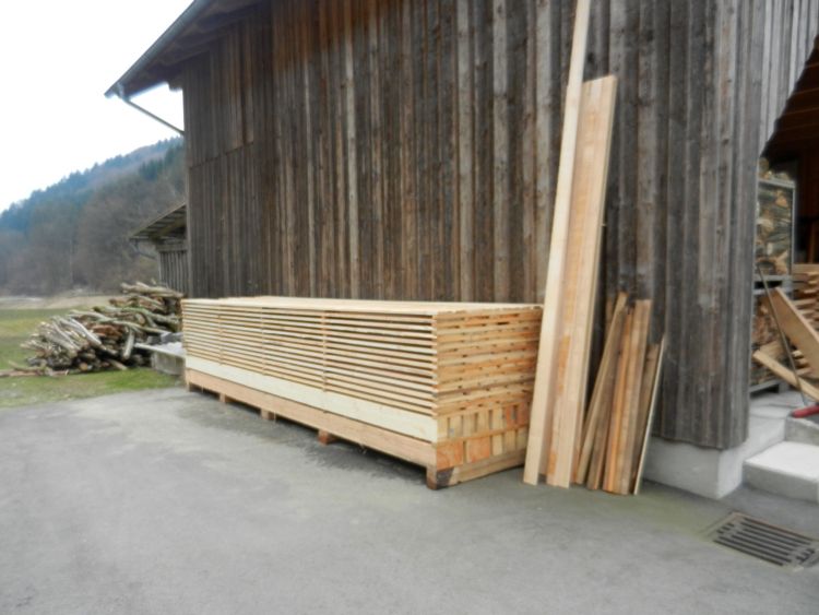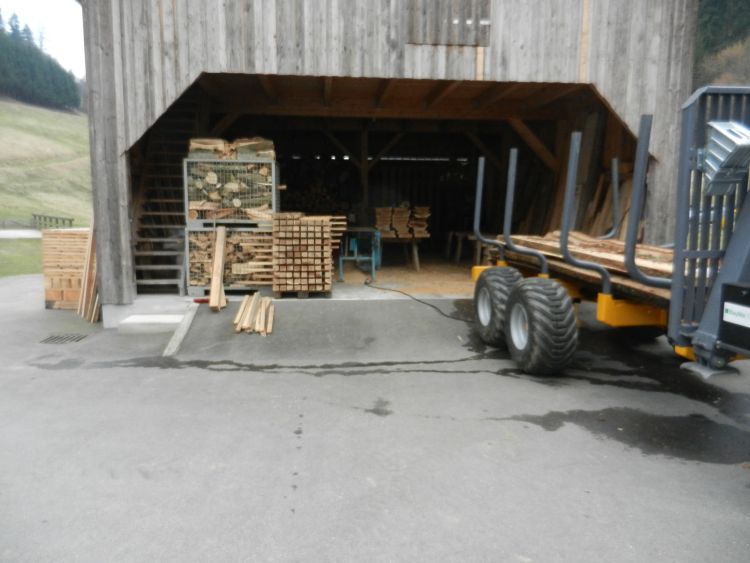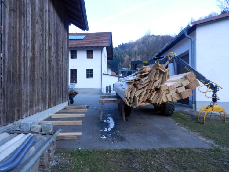 Bei der Heimfahrt dann gleich zum Sägewerk gefahren und einen Teil des geschnittenen Holzes abgeholt und aufgerichtet