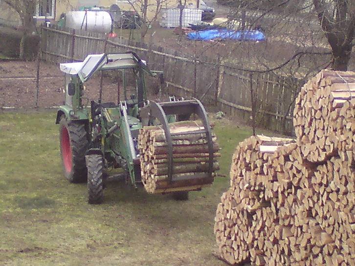 Heute morgen eine Fuhre Brennholz von Wald zum Haus des Kunden transportiert, war eine schöne Fuhre, da hat der Besitzer schon mitgedacht
