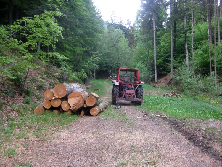 Da bei mir heuer seit letzter Woche schon da Buchenbrennholz alles verstellt ist habe ich heute beschlossen noch ein paar Buchen zu fällen. Die Hälfte liegt mittlerweile am Platz den Rest hole wenns etwas trockener ist. Müssten nochmal ca. 25 Ster werden.