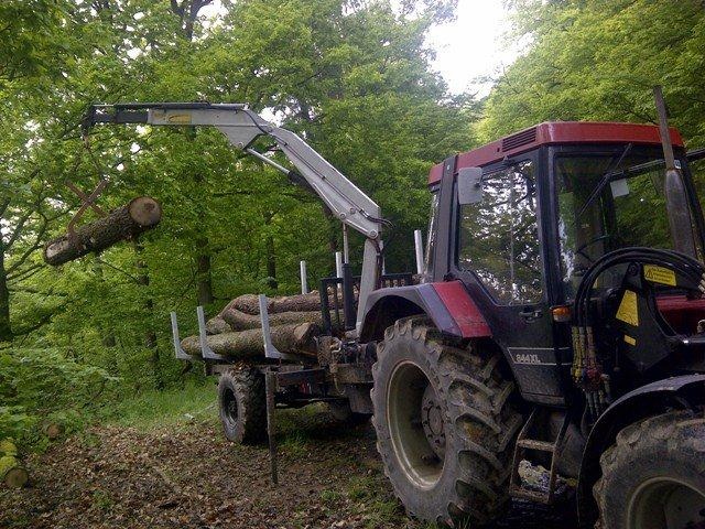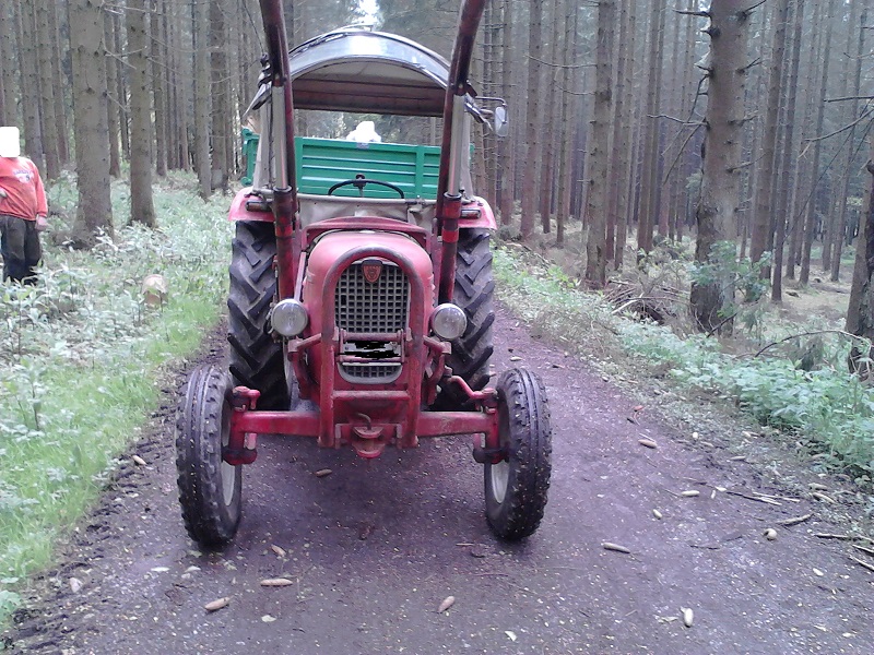Deutz DX 85 mit Forstkran KTS 6,30. Rückewagen Eigenbau 4 T. Hydraulische Winde Eigenbau für den Frontanbau . Fendt GT für Hackschnitzelbunkerbefüllung und Schneeräumen. 2 Hänger Stihl 044 Stihl 035C