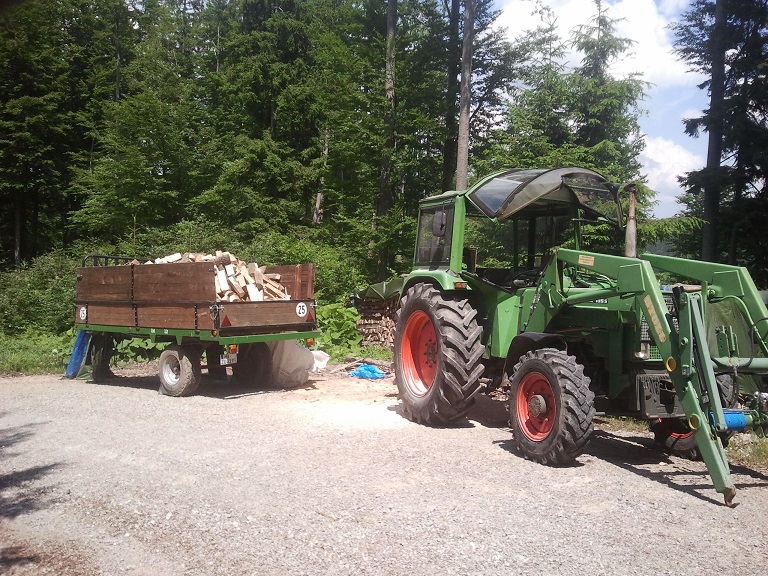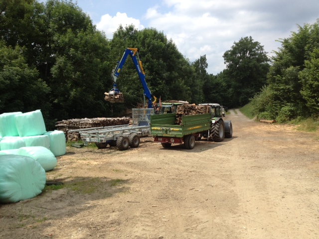 ein Rückewagen allein macht den Holzer nicht glücklich, dazu muß ein größerer Schlepper, dann werden die Wege verhunzt, also Planierschild kaufen, aber was planieren? also größerer Kipper zum Schotter fahren, das schafft der Wegehobel nicht allein, also Frontlader an den neuen Schlepper kaufen, der passt nicht mehr in die Halle, also anbauen, der alte Rückewagen kann aber zum aufschlagen nicht hoch genug heben, also größerer Kran auf den neuen Wagen, das Waldbauernleben ist schön... hab ich noch was vergessen?