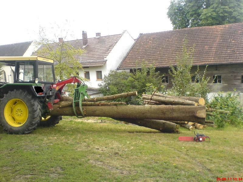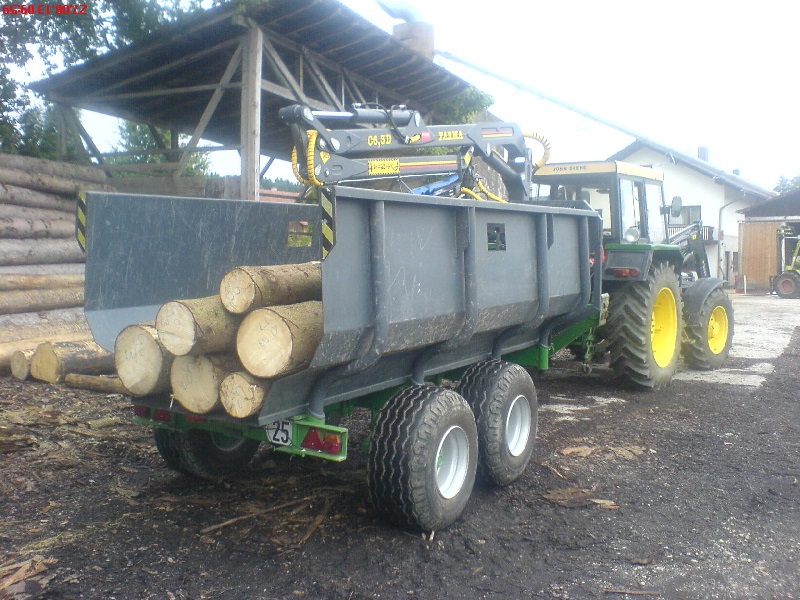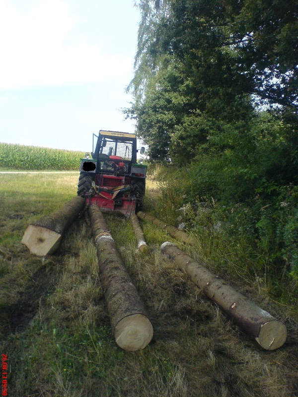 die Wanne ist praktisch für Dinge wie Wid und Bündel fahren, allerdings für Stammholz in allen Längen ist die unbrauchbar und muss runter.