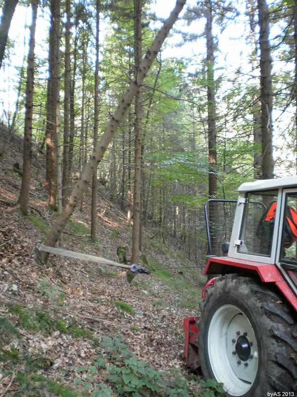 So ein 20 cm BHD Bäumchen ist als Widerlager für eine 4 t Winde zu schwach (wenn der beigeseilte Stamm irgendwo ansteht ...).