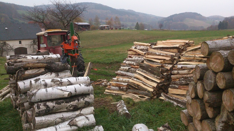 Schlepper sind wie Kirschen-die roten sind die besten! IHC 745 S; Case JX1100U mit Binderberger Rückezange Growi GSW 30 Liegendspalter mit Funkseiwinde Trommelsäge Sat 4-700 von Vogesenblitz HAF Bündelgerät Stihl MS 661; MS 261; MS 270; MS 200