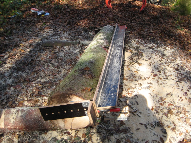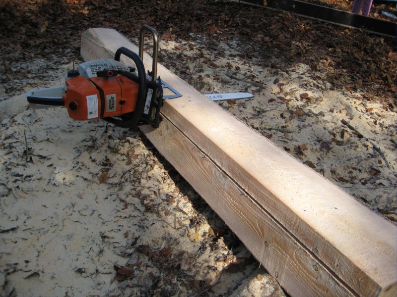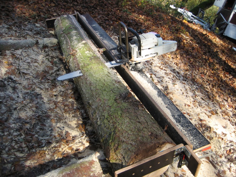 Mit dem Timmerjigg lassen sich jetzt aus dem Block wie mit einem Käsehobel die Balken/Bretter schneiden.