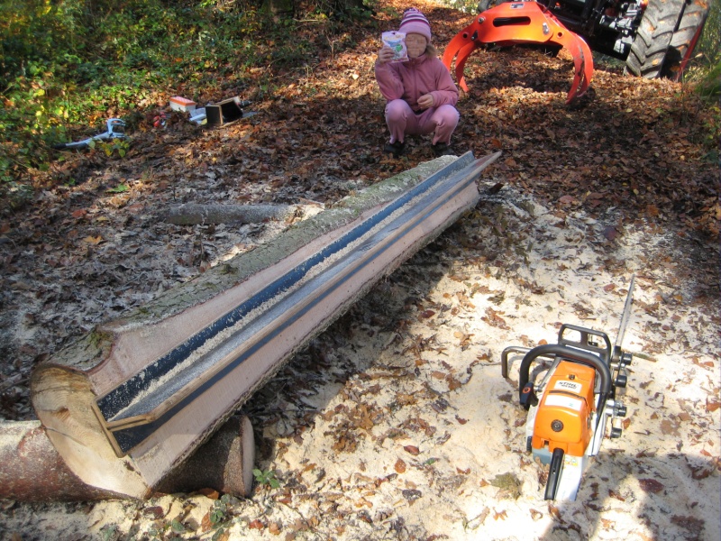 Da ich ein paar Kreuzhölzer und ein paar Bretter für ein Regal brauche, habe ich gestern wieder einmal mit dem Logosol Timmerjigg ein bischen Schnittware gemacht. Ist immer wieder eine nette Abwechslung zur üblichen Brennholzerei. Rentieren tut sich das Ganze natürlich nicht, aber es macht unbandig Spaß! Hier die Bilder: