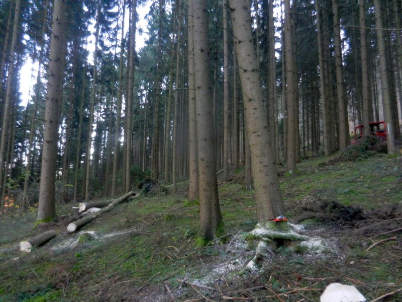 Diese Buche liegt auch am Hang und ist mit Frontlader/Bagger nicht erreichbar. Somit müsste man wie bei Dir gesehen auch mit Umlenkrolle arbeiten.