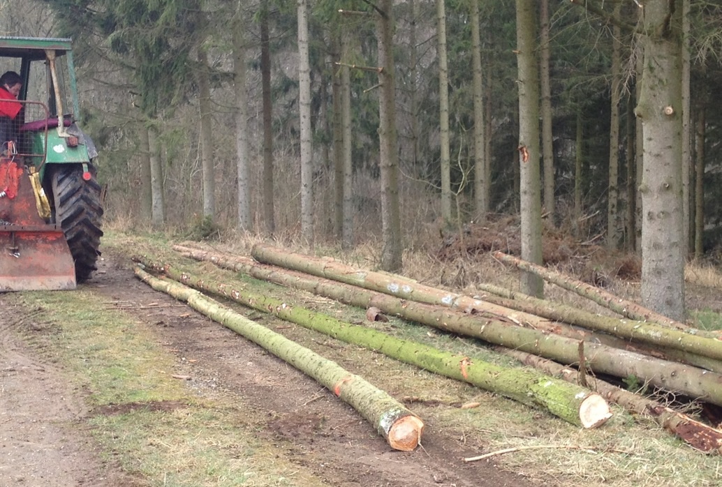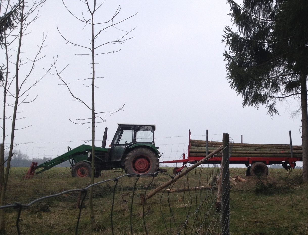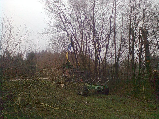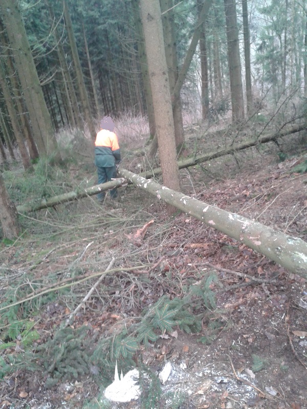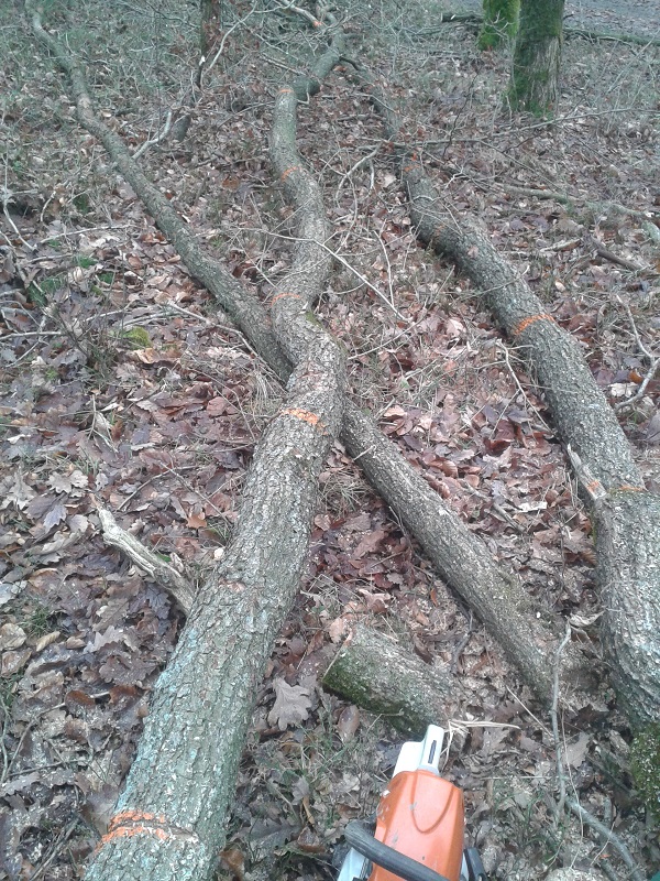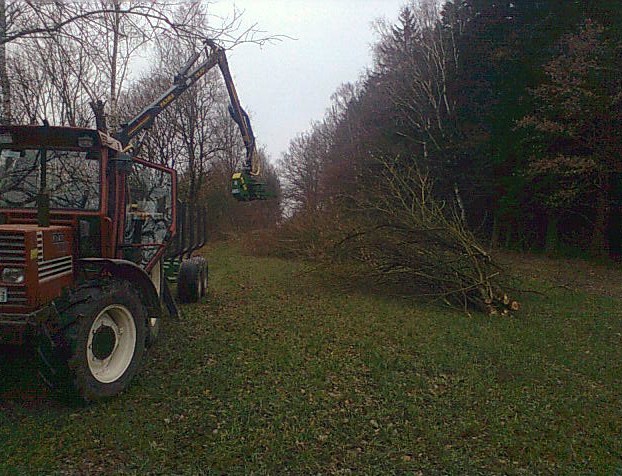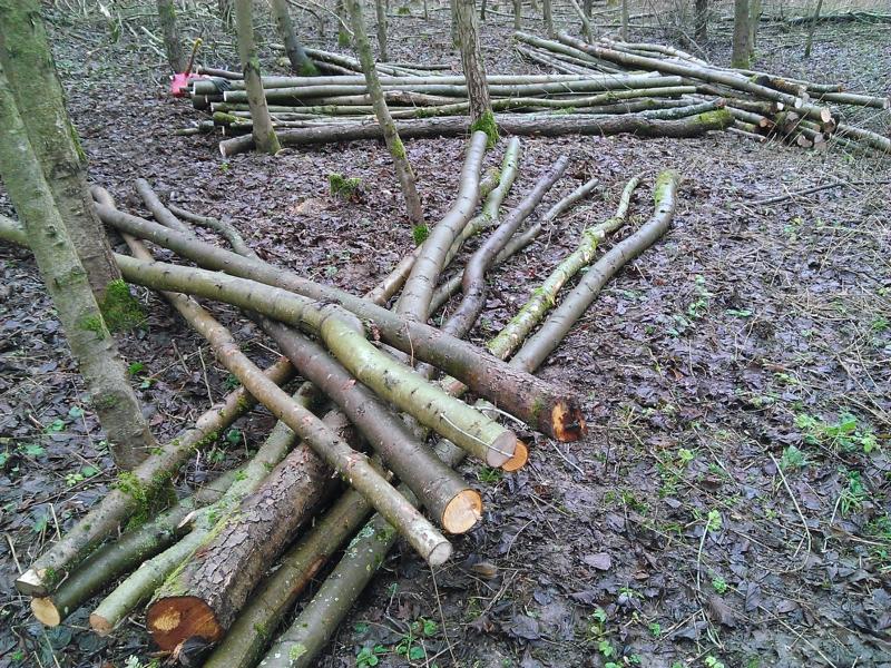 Stämmchen aus einer Jungdurchforstung per Hand mit Sappi und Handpackzange auf Häuftchen gezogen.