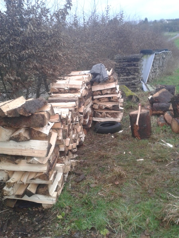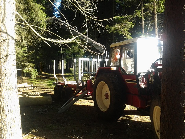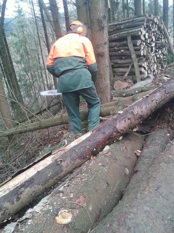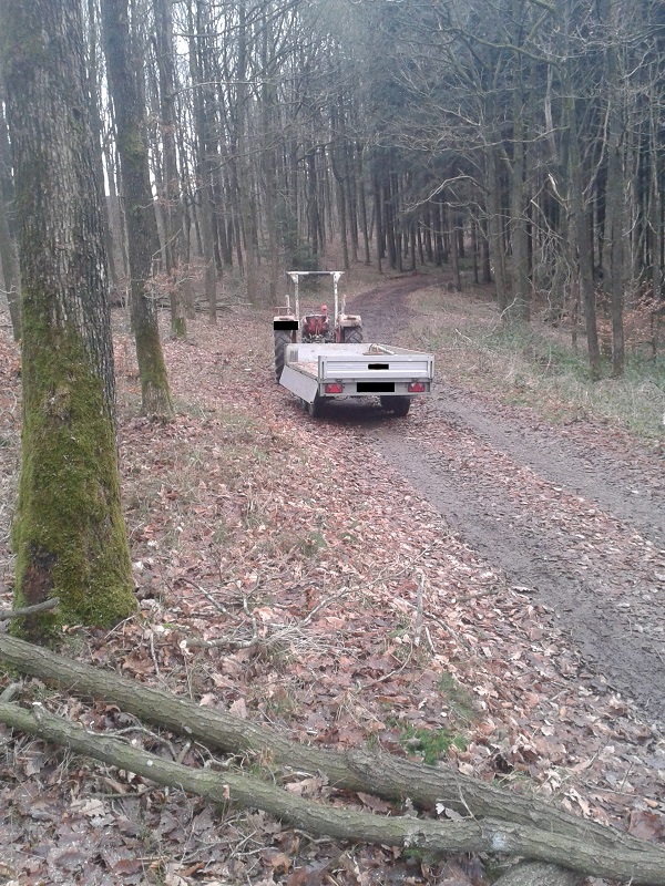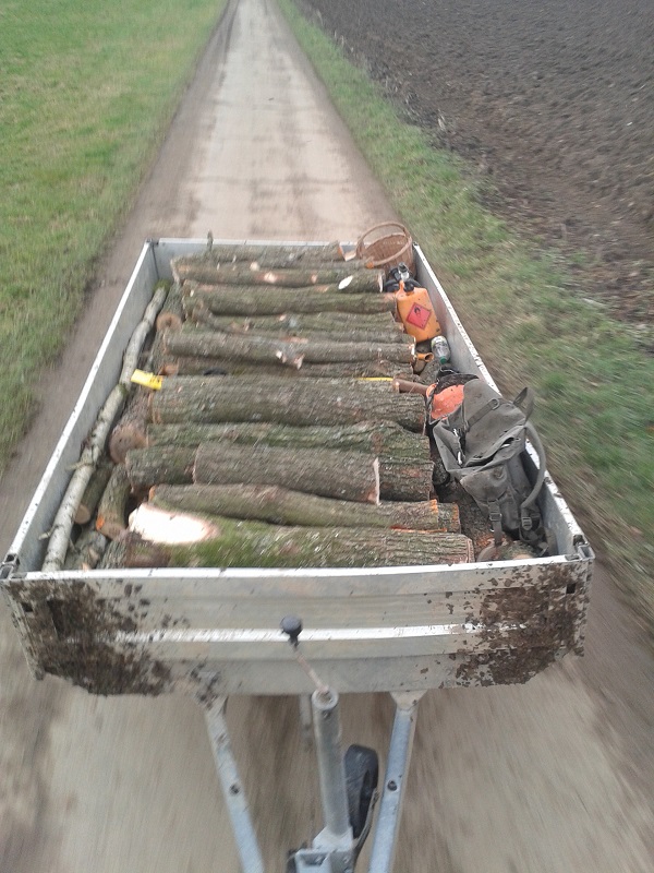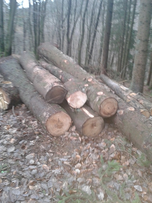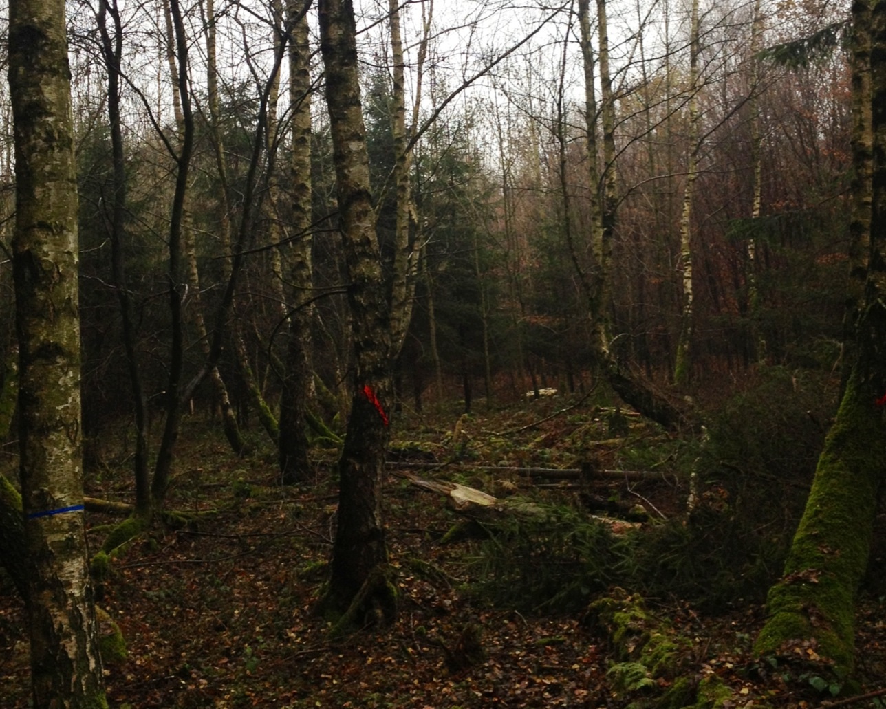 Stämmchen aus einer Jungdurchforstung per Hand mit Sappi und Handpackzange auf Häuftchen gezogen.