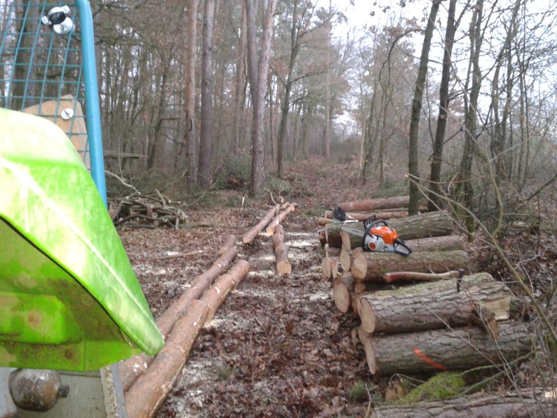 sehr ordentlich der Brennholzpolter. Wieviel Ster glaubst du kommen da zusammen und wie lange rechnest du für die Aufarbeitung?