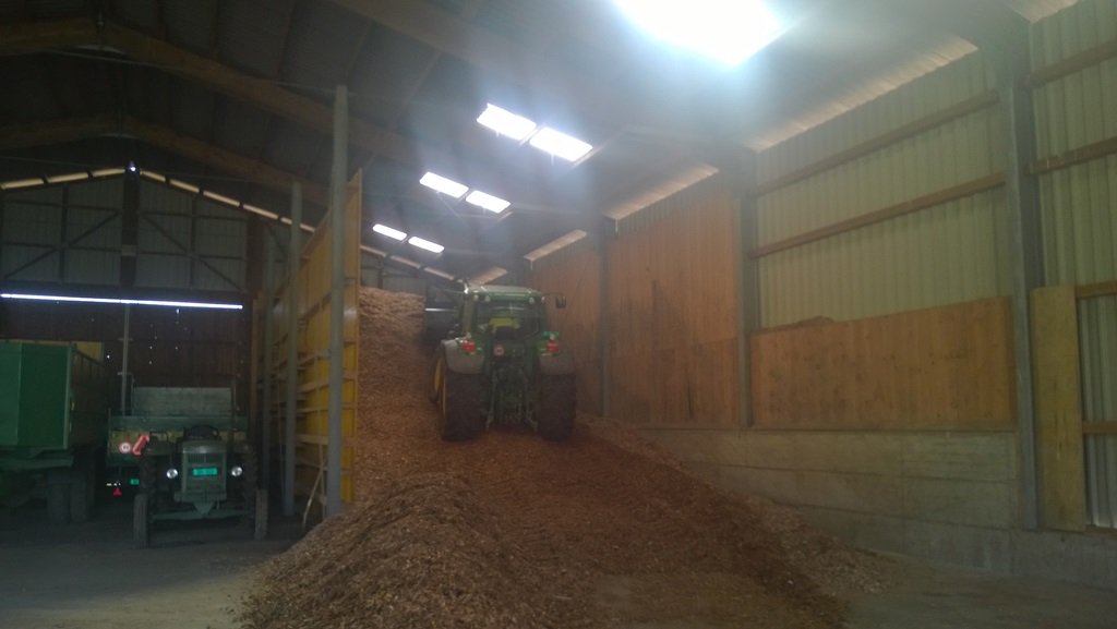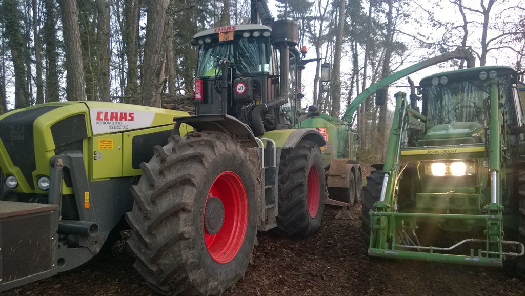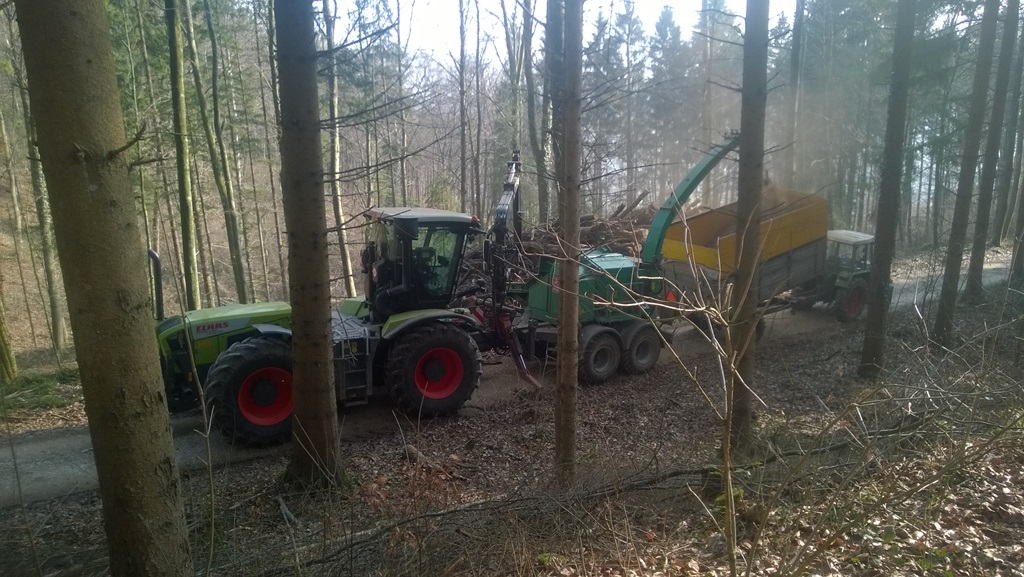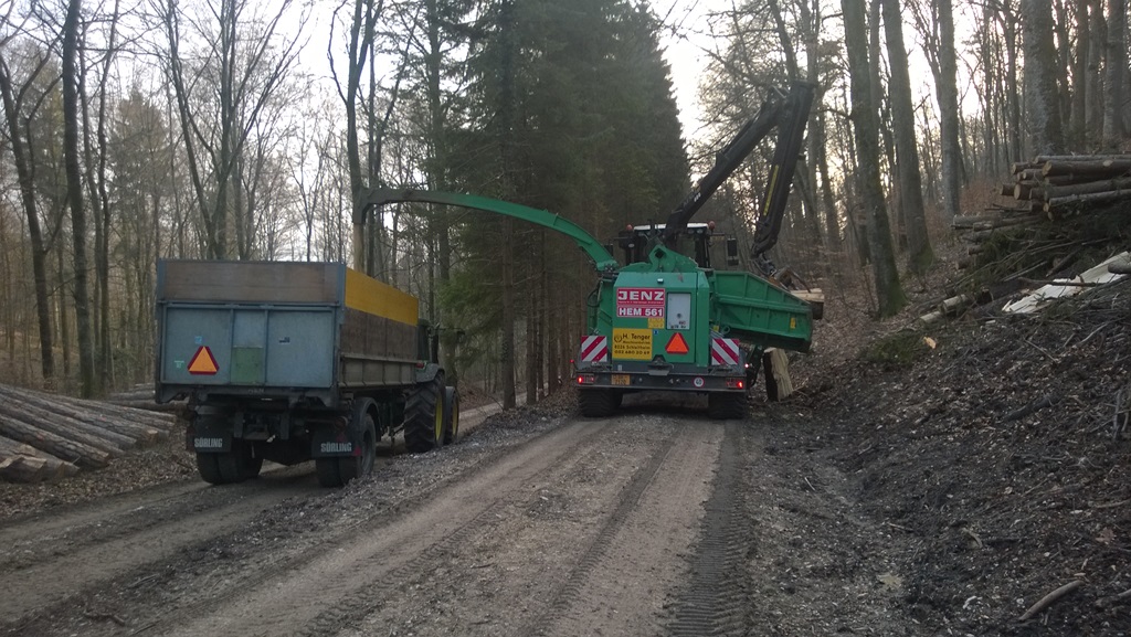 Heute war Holz häckseln angesagt. Sind rund 500 Kubik geworden. Die Halle gehört unserem Partner, er und mein Bruder betreiben jeweils einen Wärmeverbund mit rund 300kW Kesselleistung. Zusammen brauchen wir 800-1000 Kubik im Jahr.