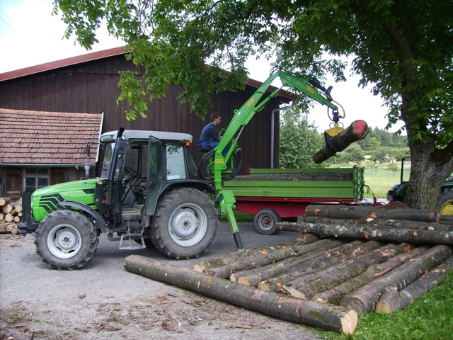 Arbeitest du jetzt auch schon mit schwereren Geschützen. Arbeitest du mit deiner Firma in Gemeinschaft mit noch professionelleren Rückern? Hab mich eh schon gewundert weil du geschrieben hast dass du nicht alles mit dem Mog machst. Wär für dich nicht auch mal ein Rückewagen mit Kran intressant.