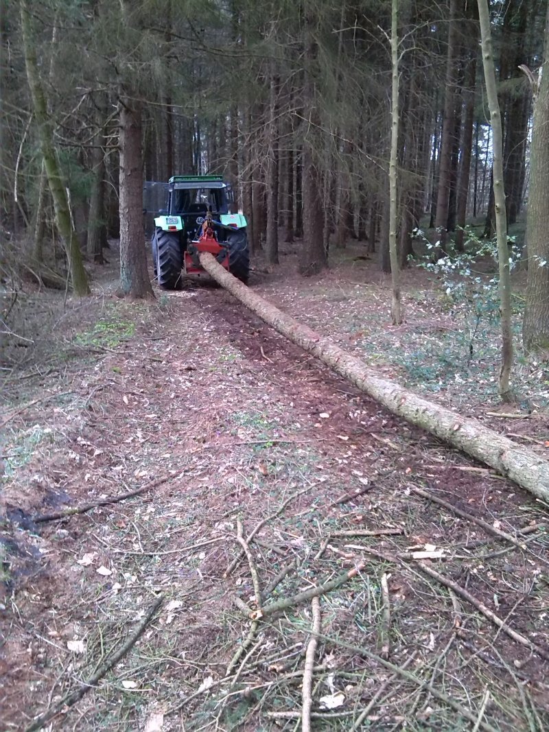 Auf den Bildern sieht man auch eine Holzzange. Die habe ich mir einfach mal ausgeliehen, um zu sehen, ob mir so was gefallen würde. Ohne Klemmleiste oder wie das heißt ist das natürlich eine Katastrophe. Aber auch mit der Leiste wäre es für mich nicht optimal. Meine Stämme liegen links und rechts von Rückegassen. Es ist viel Rangiererei, viel „Kupplungschleifenlassen“. Zuhause am Hof radiert man förmlich die Reifen runter. Dann habe ich einfach einen Freund mit dem Rückewagen durch geschickt. Von der Art her super, aber um das günstig machen zu lassen, müsste ich erst alle Stämme mit der Seilwinde zusammenziehen. Jeden Stamm anhängen, abhängen. Da wäre wieder so eine Zange recht, aber an der Heckhydraulik. So schließt sich der Kreis. Naja und jetzt möchte ich zum ersten mal einen Schneidspaltautomat kommen lassen. Aber wie bestücken? Entweder mit der Palettengabel oder mit so einer Zange. Hier fände ich einen Anbaukran für den 3-Punkt praktisch und flexibel. Mal zuhause rum laden ohne Hänger und mal damit im Wald mit Rückewagen aufladen. Man könnte auch einen normalen Hänger ran hängen damit man den ganzen Kleingrusch aufladen kann. Also warum bevorzugen die meisten einen kompletten Rückewägen und kein getrenntes System mit Anbaukran und dahinter einen Rückewagen. Nachteile?